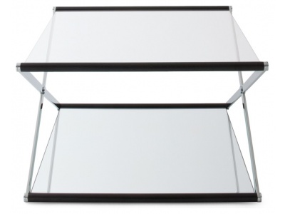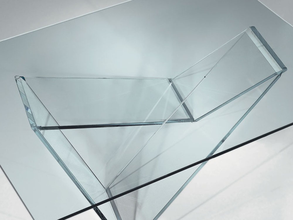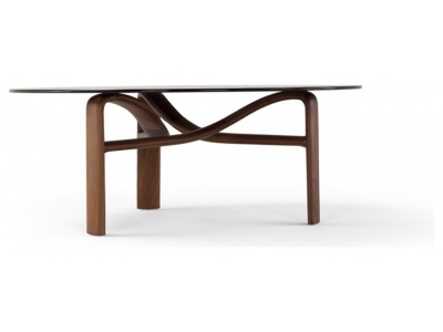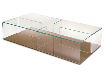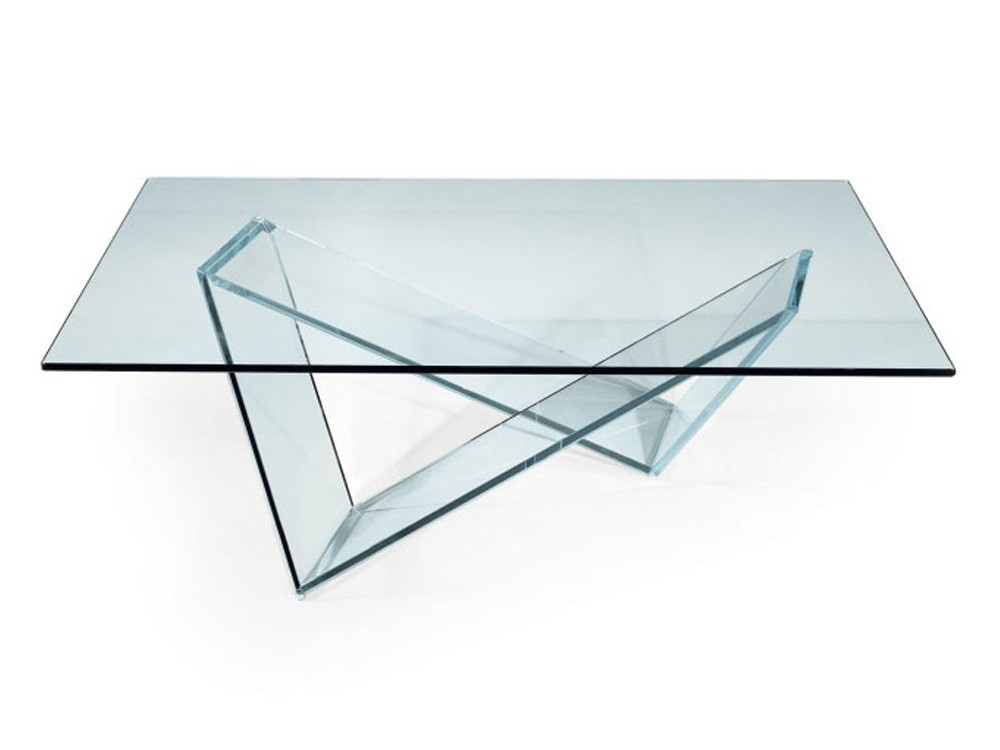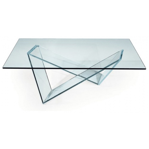 Modern coffee table by Riccardo Lucatello for Reflex Angelo featuring a dual base that darts from the centre of the rectangular top.