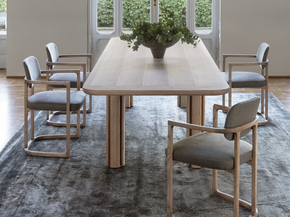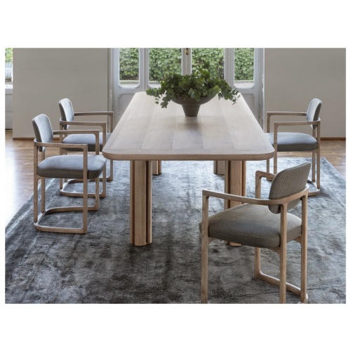 Traditional Italian craftsmanship converges with modern ‘less is more’ ideology to create a bold and sleek dining table, characterised by its four recessed legs.
