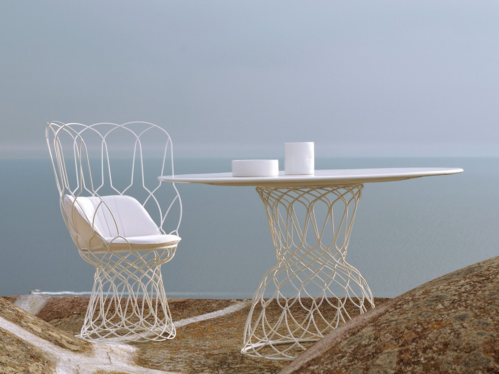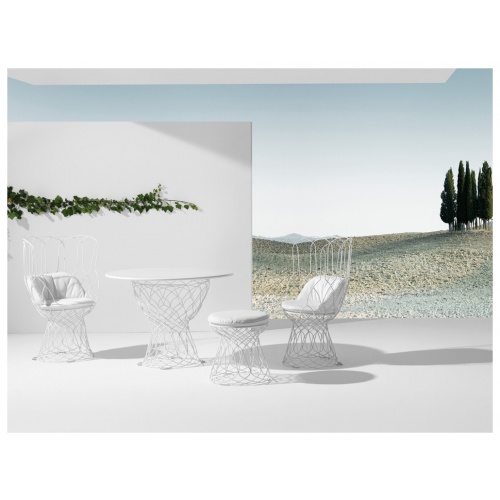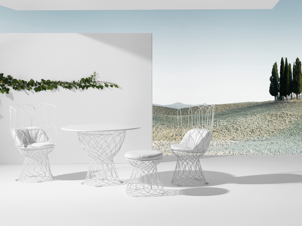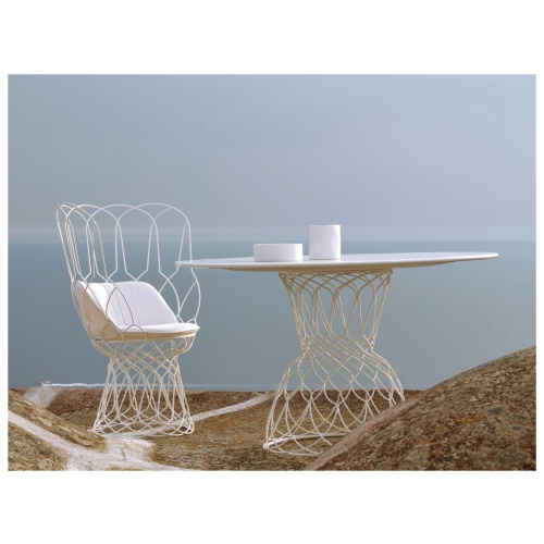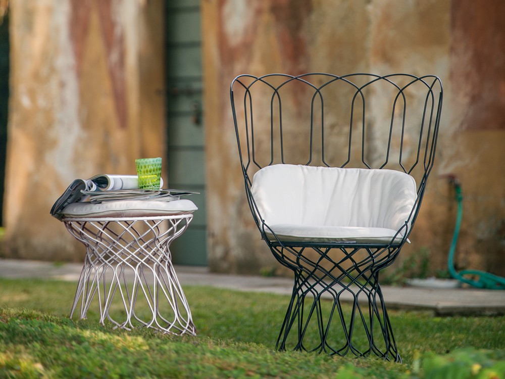 The Re-Trouvé outdoor armchair conveys elegance and character in both classic contexts and contemporary settings.
