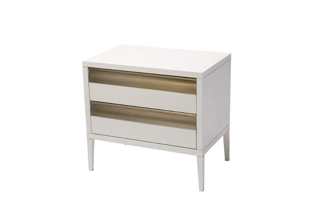 The design detail of the curve of the drawer fronts, helps make the Rhona side table a functional, yet stylish piece of furniture.