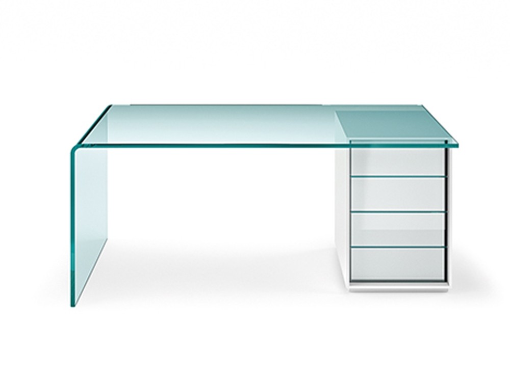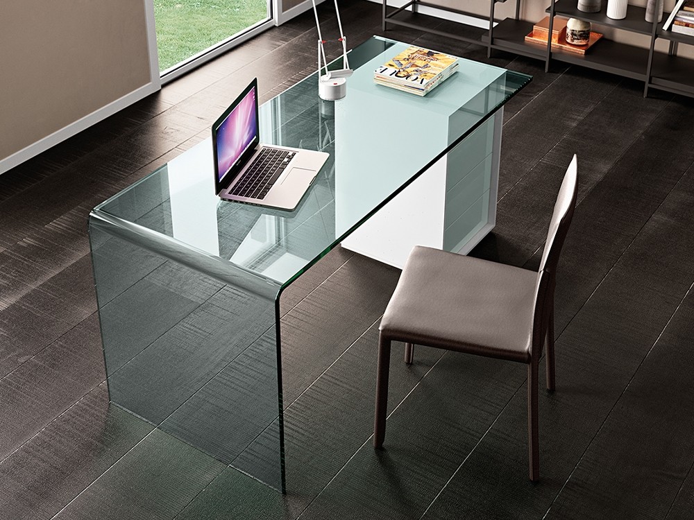 Designed by CRS Fiam, this elegant collection of desks exudes the grace and charm reminiscent of Italian design. With a contemporary 15 mm curved glass top and optional polished aluminium details, this desk is perfect for any contemporary home office.