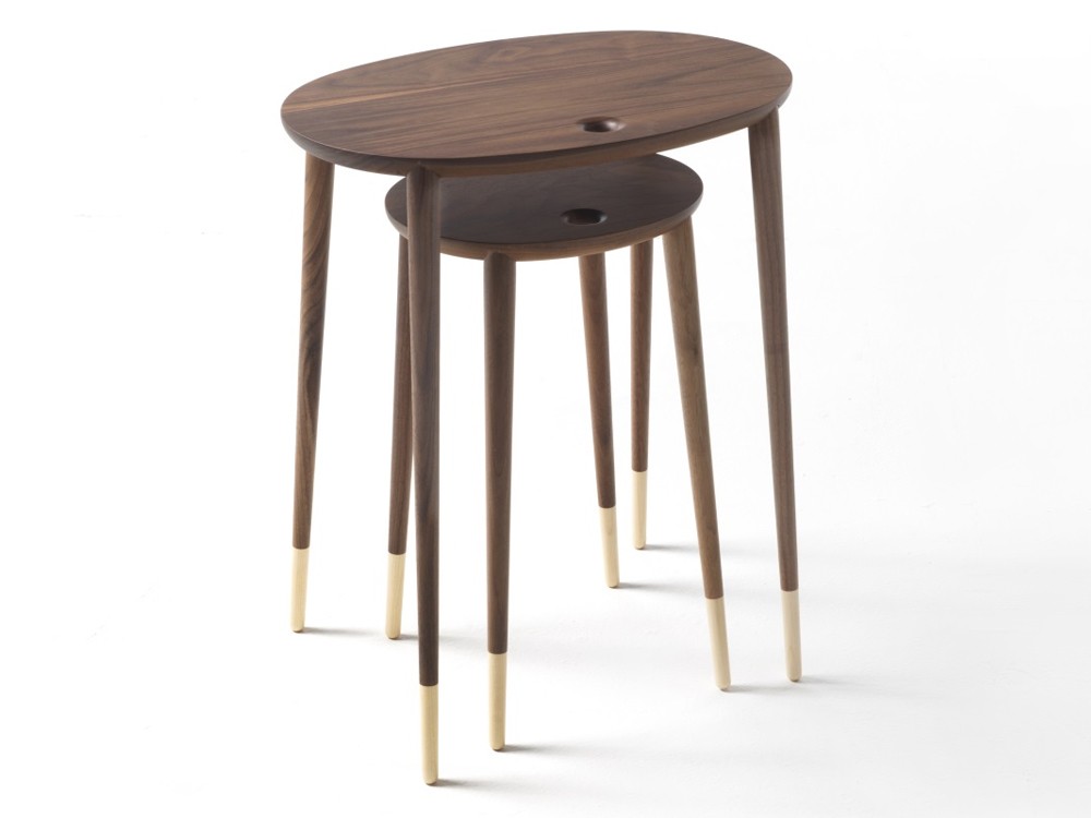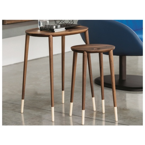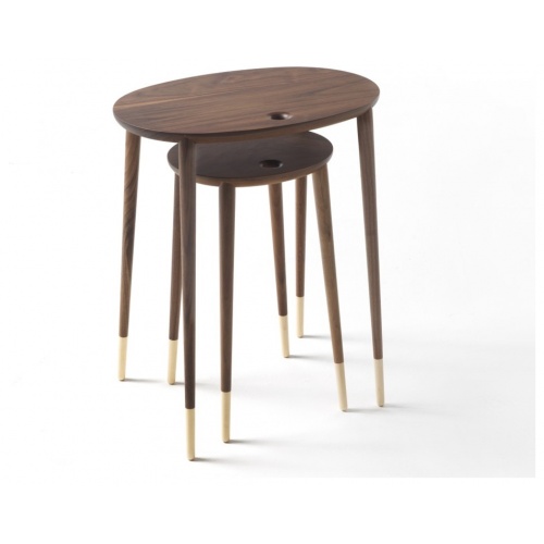 This smart nest of tables comprises of two tables of differing heights that fit together in a sophisticated manner.