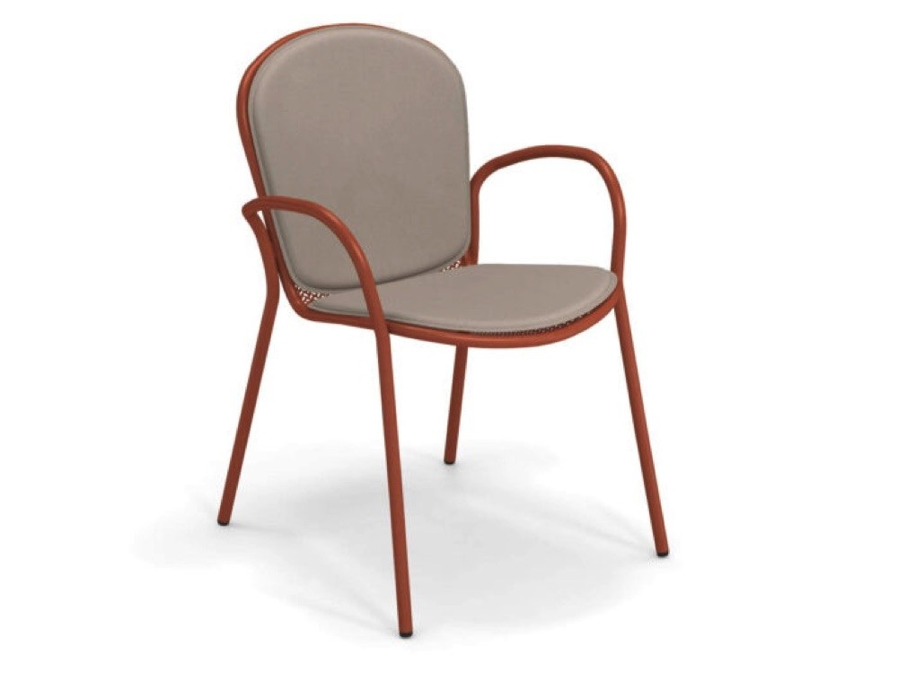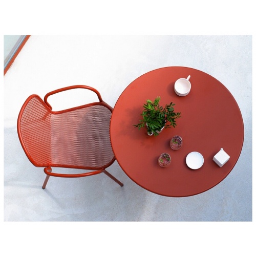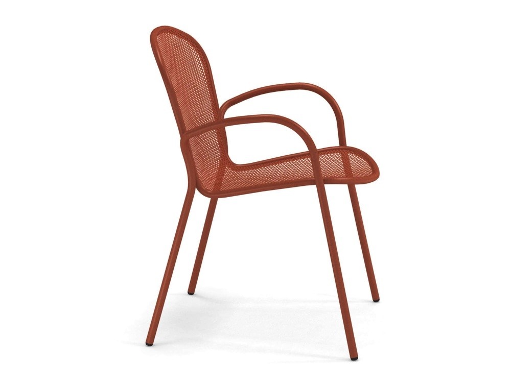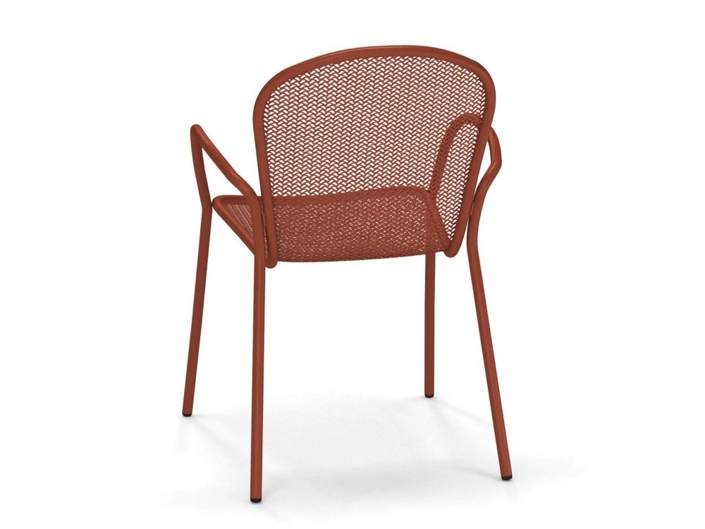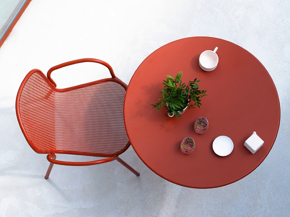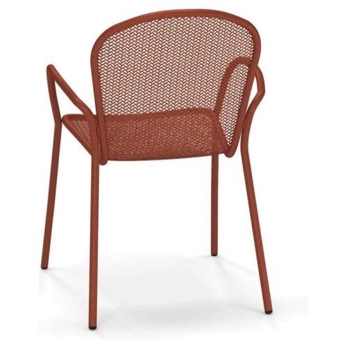 Ronda is a petite, curvaceous chair designed for outdoor use. The sheet metal is made soft by the shape, which follows the curves of the body, and by the design that recalls a fabric or a lace. Minimum order quantity: 4 chairs. To order mix & match colours, please contact the showroom.