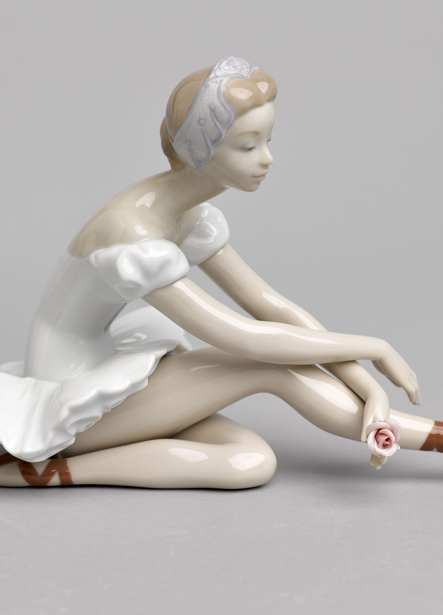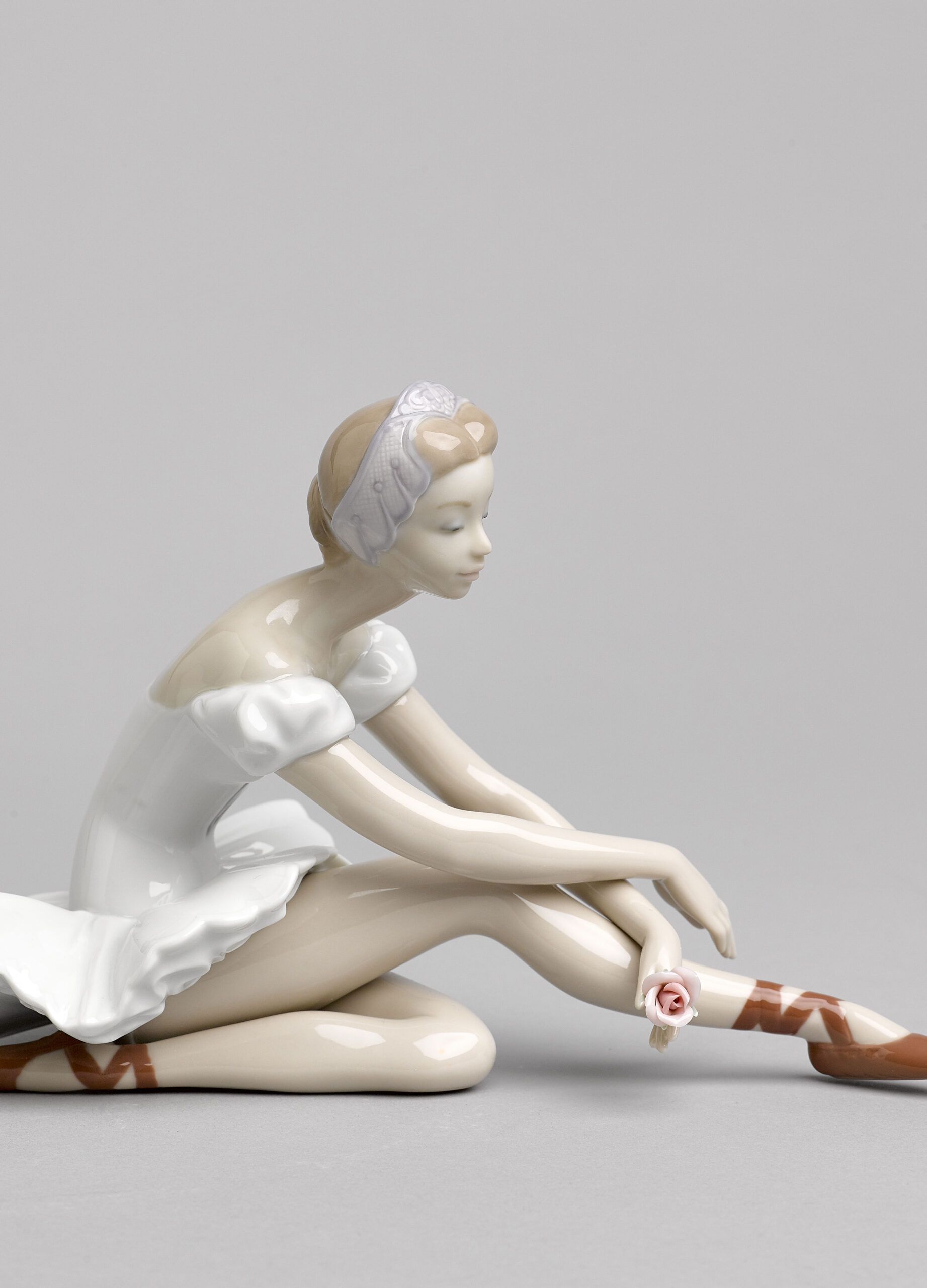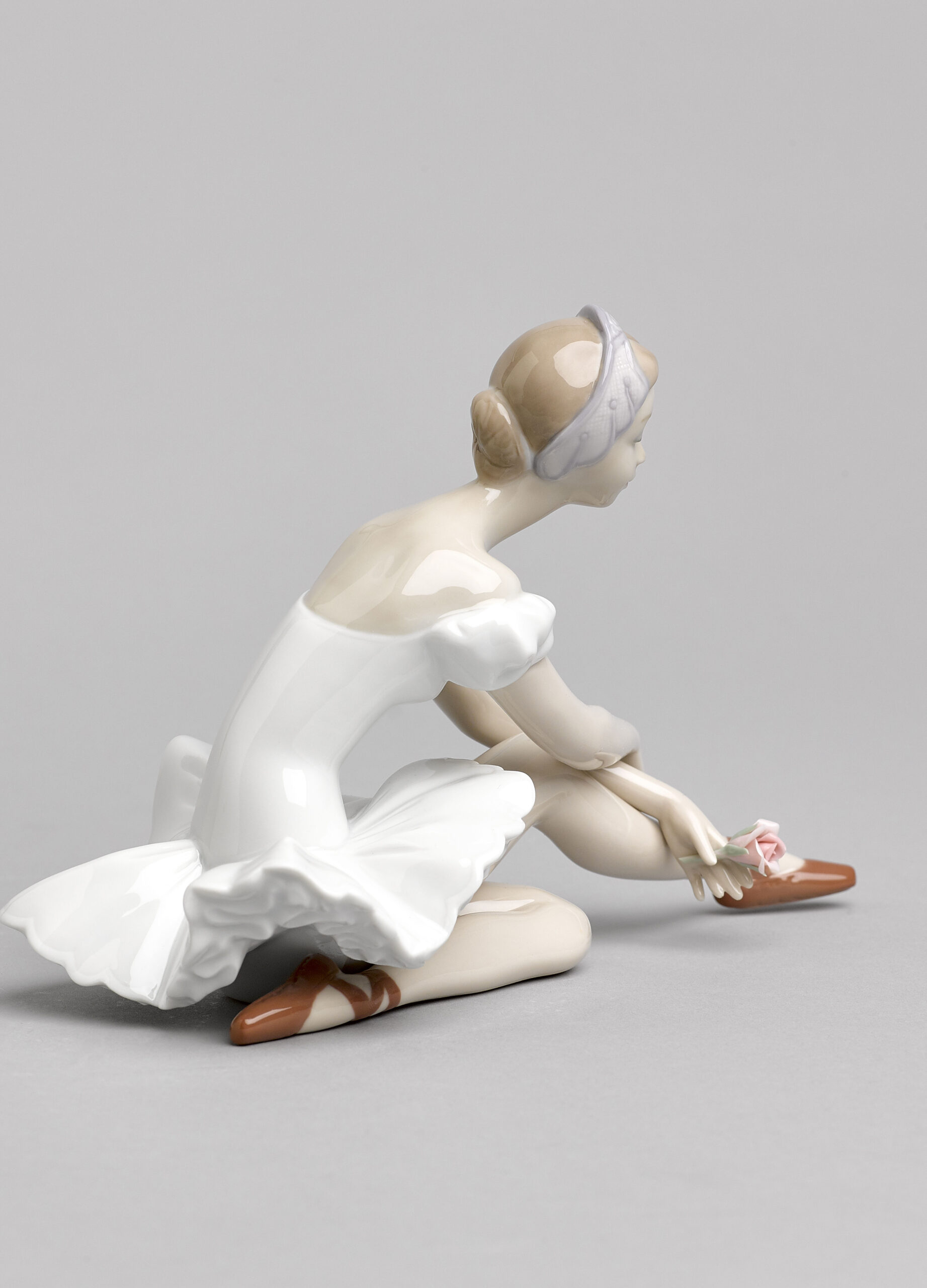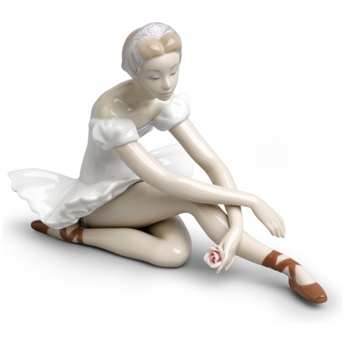 The dancer pauses during a rehearsal as she contemplates the rose she holds delicately in her hand. This piece is full of elegance, sweetness and harmony. A creation made in glossy porcelain and decorated in soft pastel colours, ideal for fans of dance, as a gift or as a collectible.