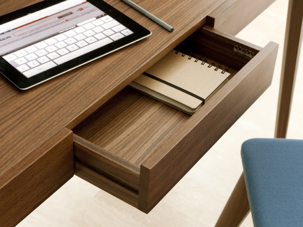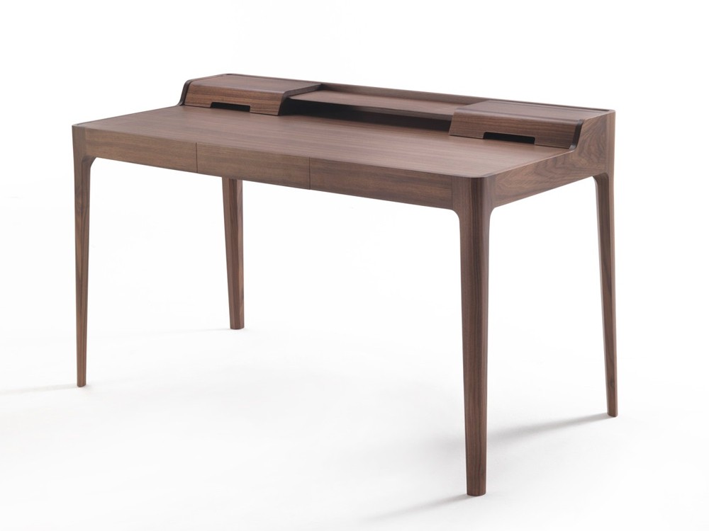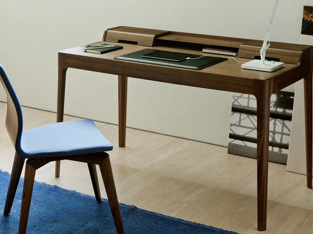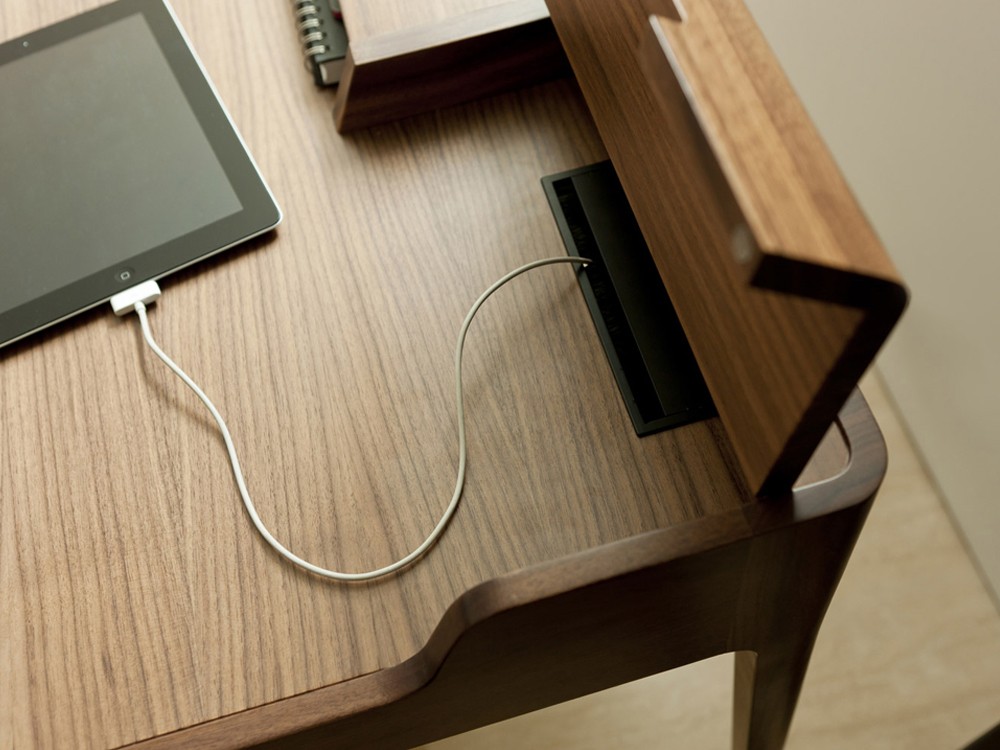Saffo is a stylish writing desk, which will sit perfectly in any modern home-office. Made from solid canaletta walnut with a drawer in canaletta walnut & birch plywood, the Saffo desk has compartments to hide unsightly cables.