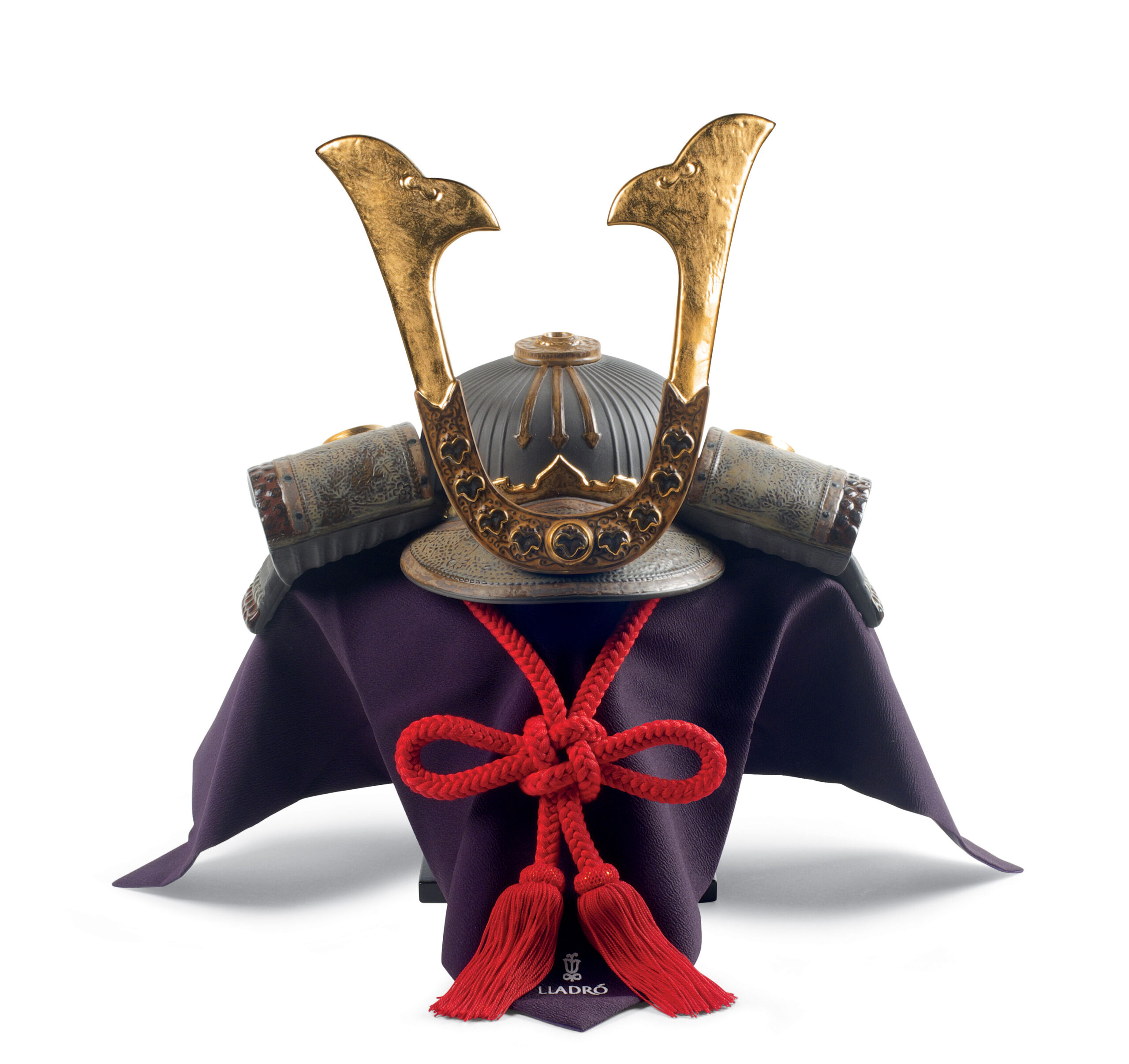 Piece inspired by the helmets of the ancient samurai, one of the most iconic pieces of clothing worn by these legendary warriors. Made in matte black porcelain with gold lustre and richly decorated with exquisite decorative work, this creation is a tribute to traditional Japanese culture.