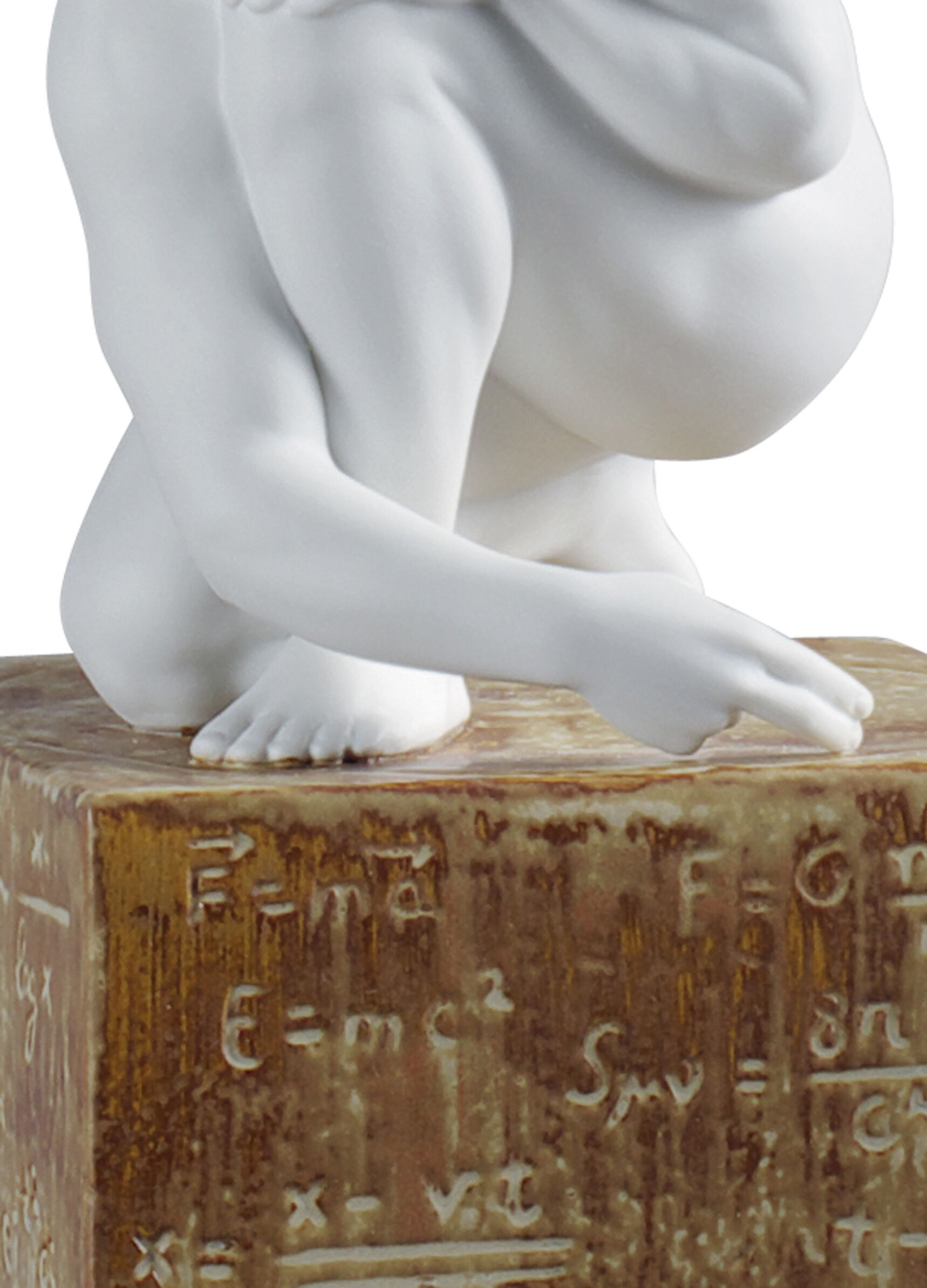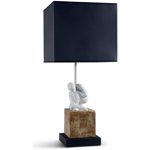 LladrĂ³ table lamps combine functionality with beauty and sculptural perfection. The straight lines and perfect proportions of the screen harmonize and contrast with the figurative forms that serve as a base. In this allegory of Science, mind and reason guide man in his search for knowledge. The essential formulas of physics and mathematics, engraved on the four faces of the base, remind us of humanity’s effort to unlock the secrets of nature.