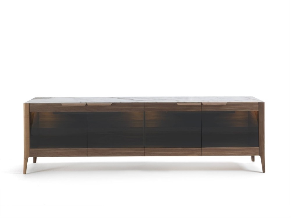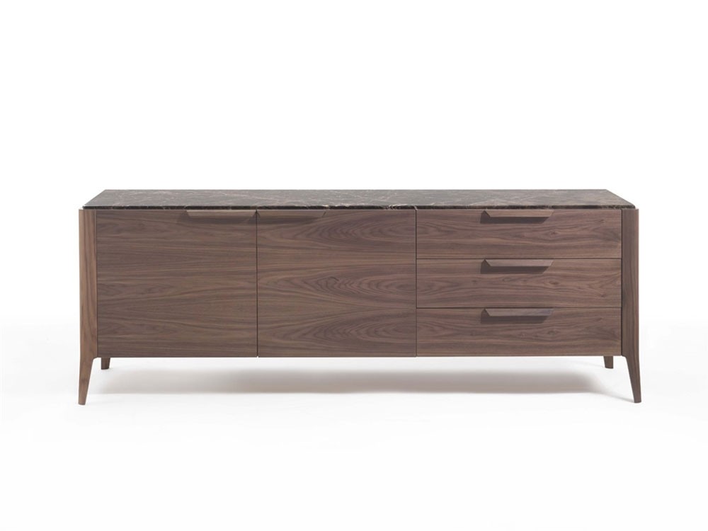Designed by Carlo Ballabio for the luxury Italian furniture brand Porada, the Atlante 3 sideboard combines a solid Canaletta walnut frame with an exquisite marble top.