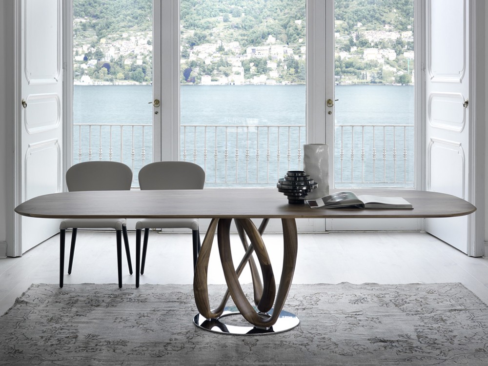The Infinity Oval Wood dining table features Porada’s signature ‘Infinity’ base.