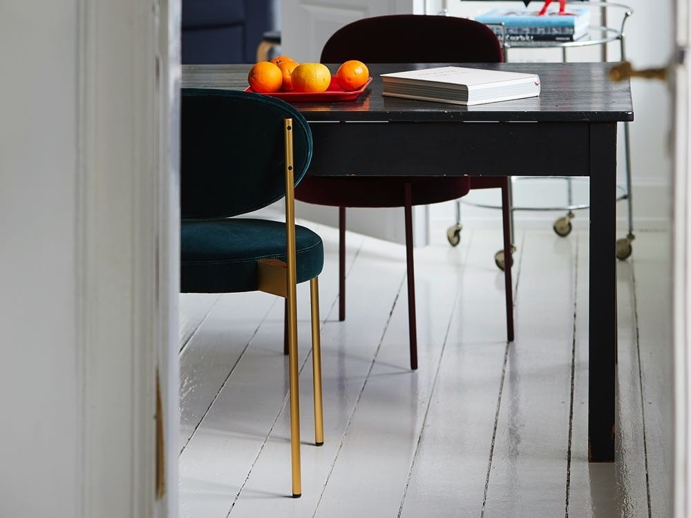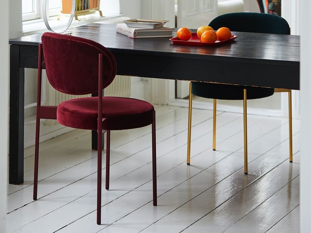 Created in 1967 by acclaimed designer Verner Panton, the Series 430 chair is a staple of Scandinavian design. It features a fully upholstered stackable seat and sleek pointed legs that add drama and style to contemporary homes. Now available with a glamorous brass base. Minimum order: 2 chairs.