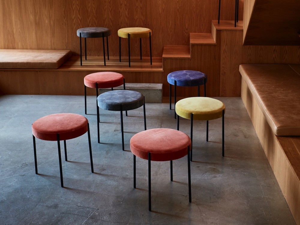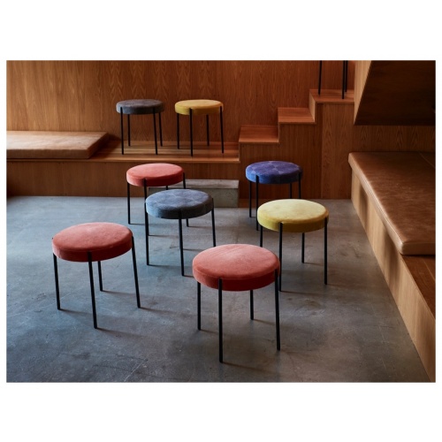 The 430 Stool is the most petite member of Verner Panton’s much-acclaimed 430 Family. All plush upholstery and tapered legs, it is the ultimate flexible seating option. Minimum order quantity: 2.