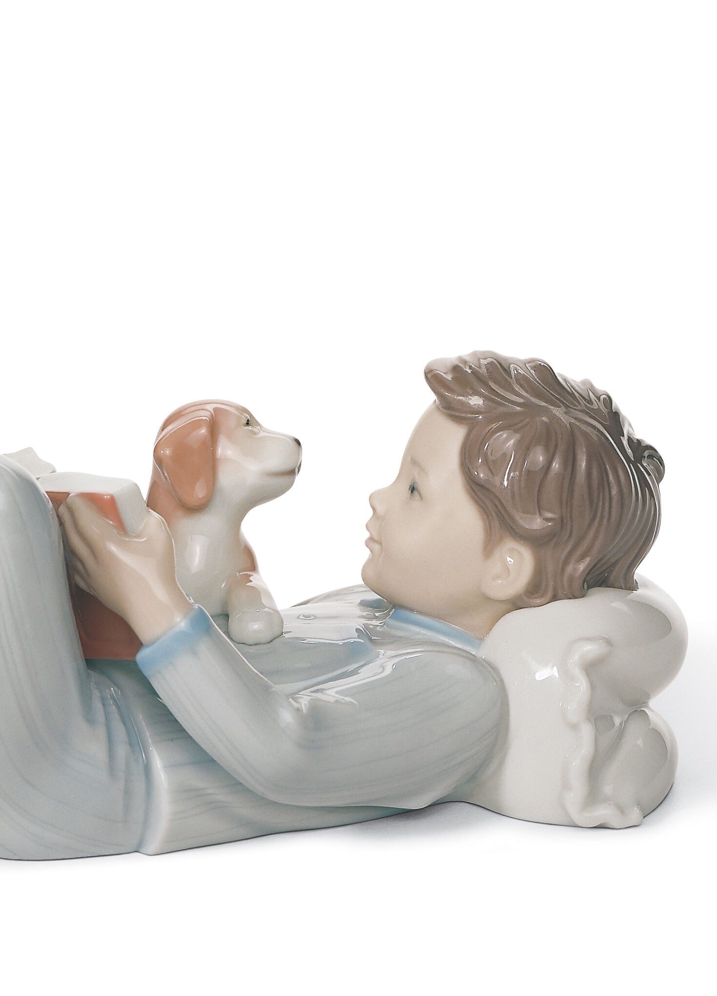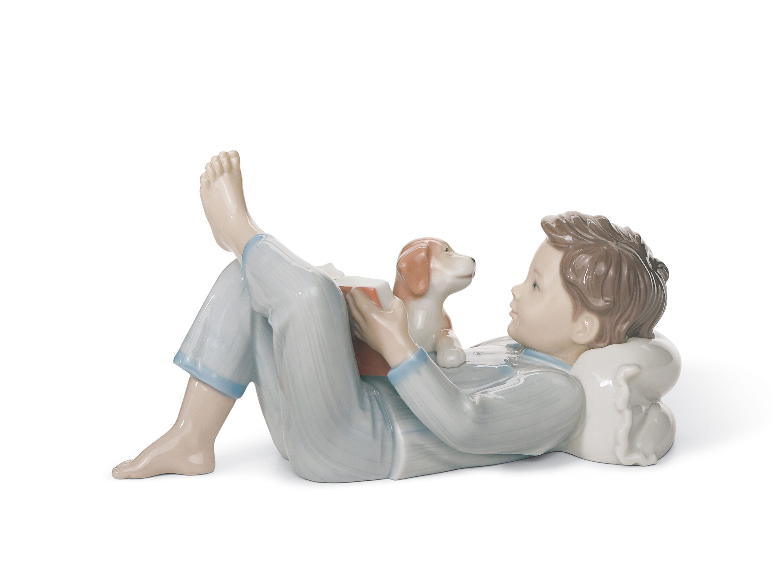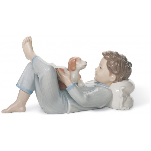 After a long day of school and games with friends, there’s nothing better than a little reading before going to bed, especially if we can share it with our favourite pet. A glossy porcelain piece, finished in soft pastel colours, perfect as a gift, a collectible or a decoration.