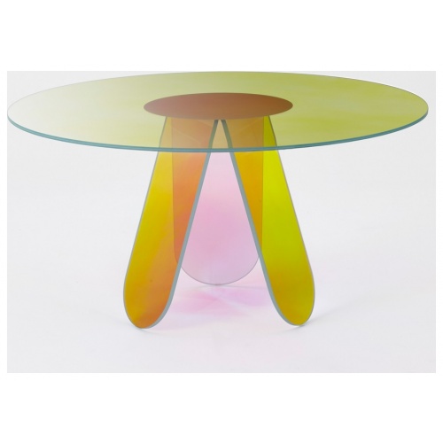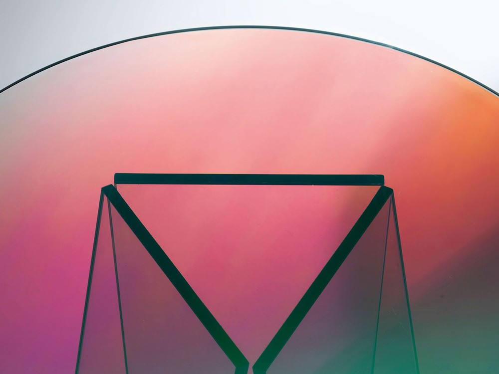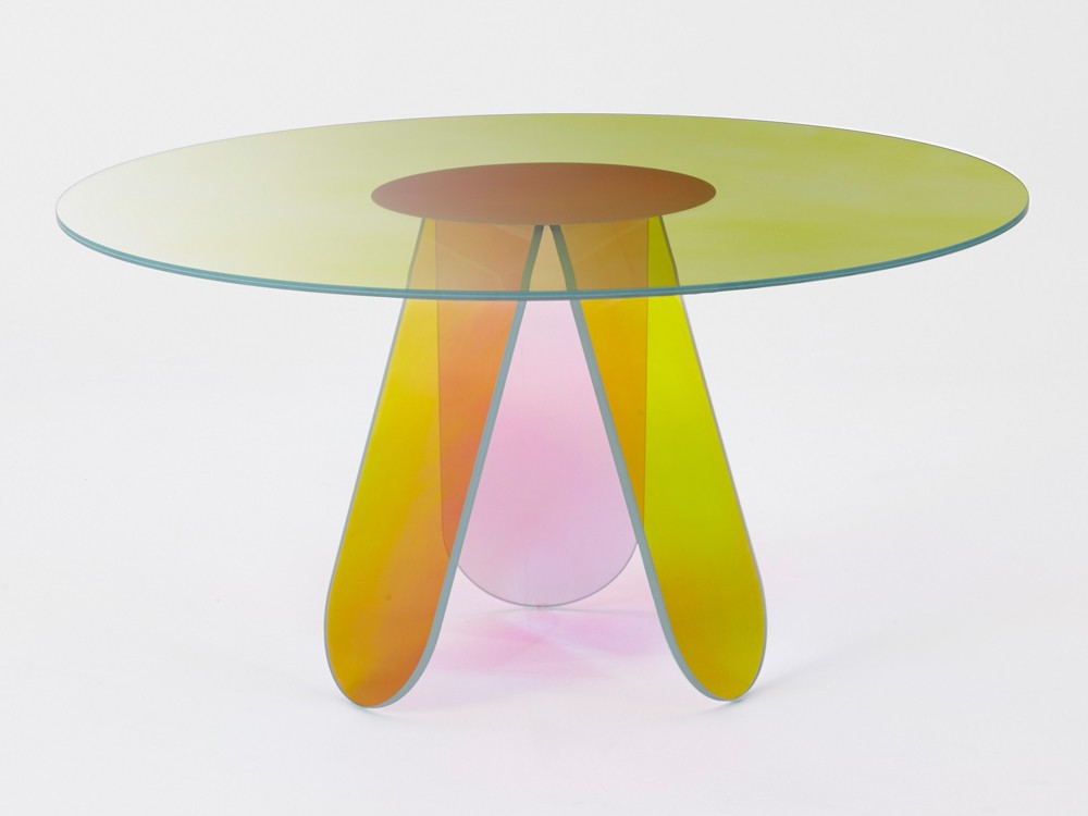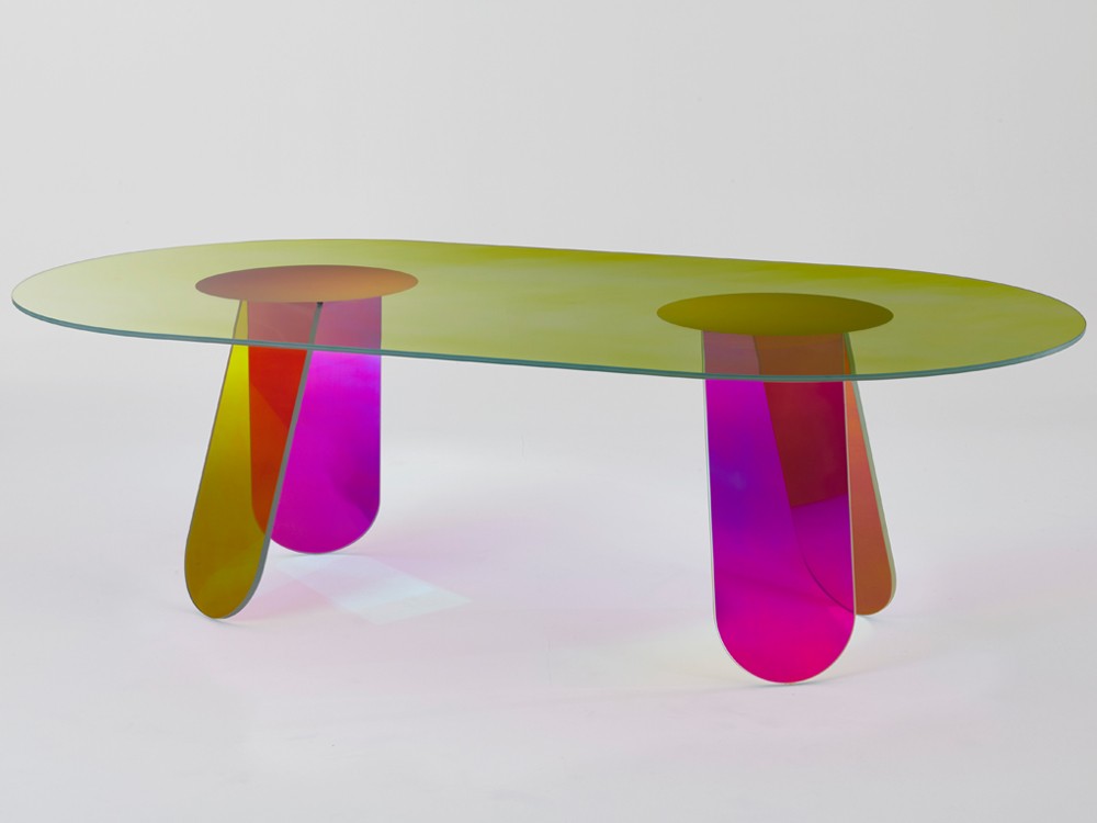 Characterised by a special iridescent multi-chromatic finish; the nuance varies according to the angle of the light source and the vantage point. Reflected objects with a magical and ethereal appearance emerge.