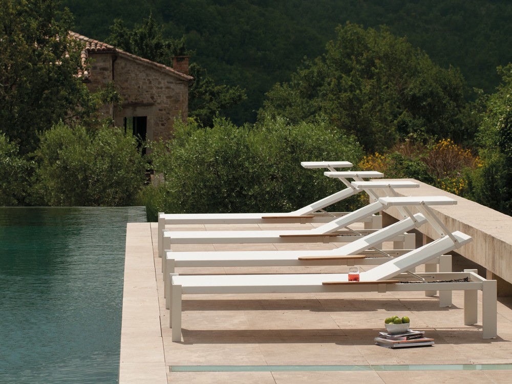 Full lines and an essential design, the Shine outdoor sunbed in aluminium and teak is perfect for a long lazy summers day.