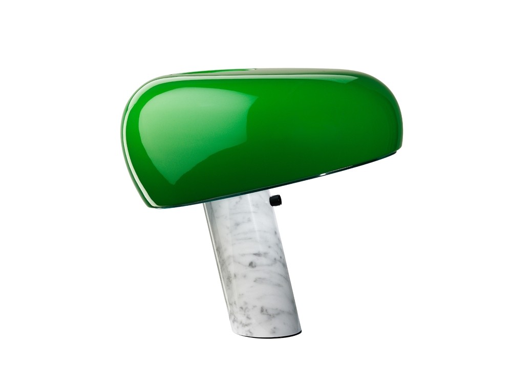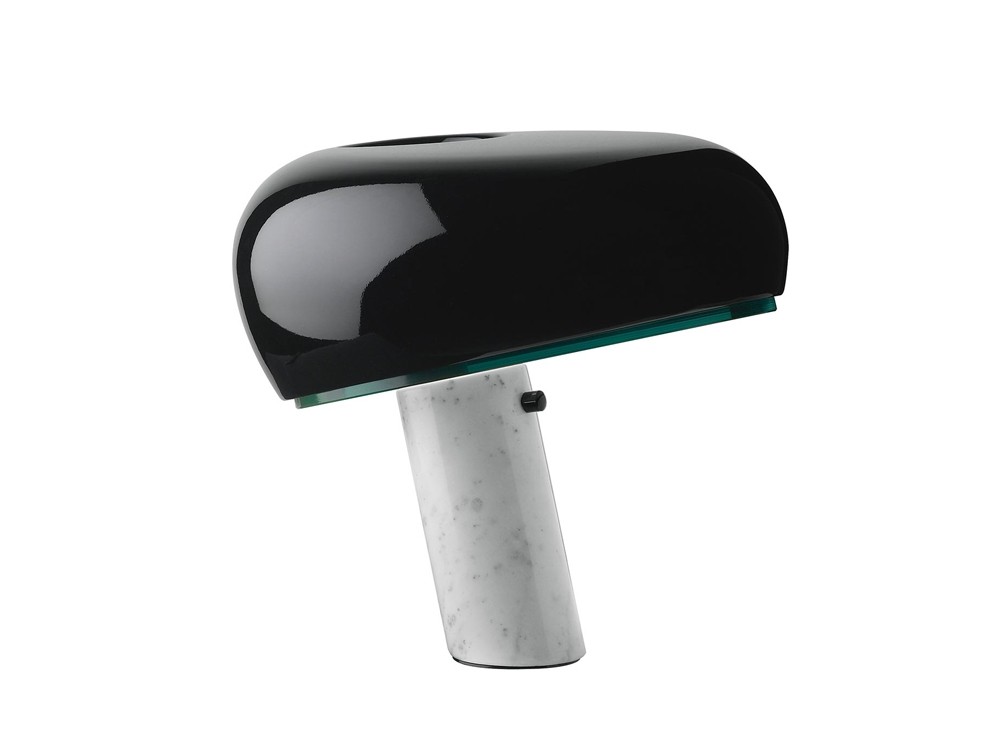 Snoopy is an iconic table lamp, initially designed in 1967 by Italian masters, Achille & Pier Castiglioni. Inspired by the loveable cartoon dog of the same name, it features a stylish overhanging shade which serves to insulate and direct a warm gush of downward light.