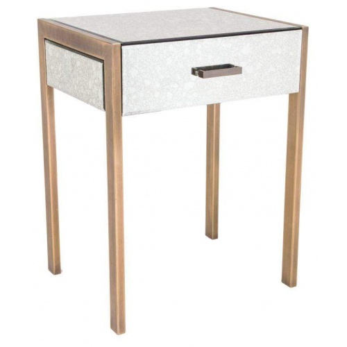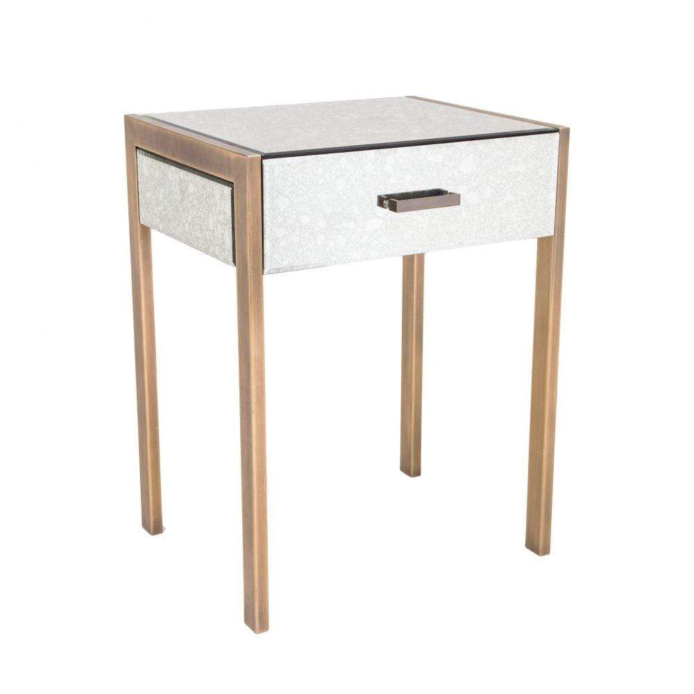 Sophia Antique Mirror Side Table with Brass Gold Finish Legs