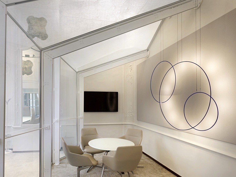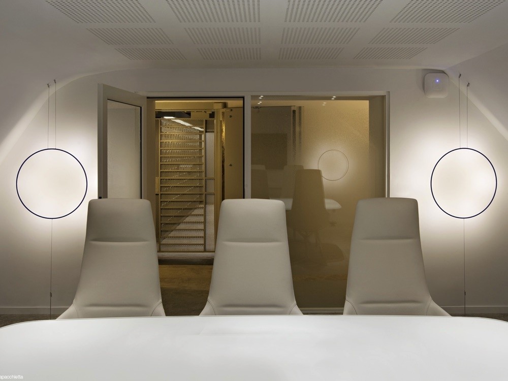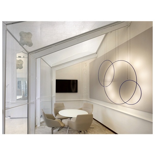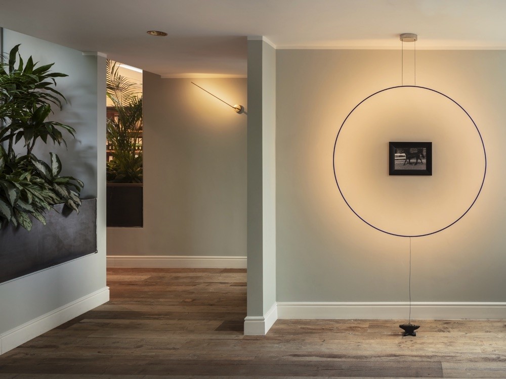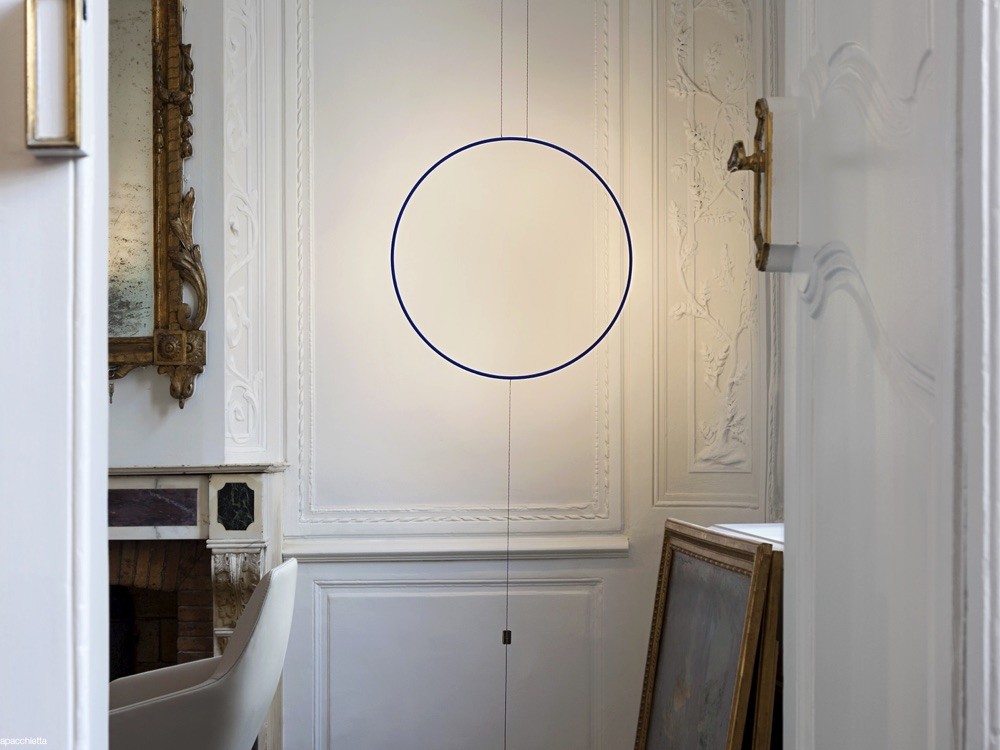 The Sorry Giotto! Pendant Light finds beauty in simplicity using a delicate sphere to create a beautiful circle of light. It also riffs on the idea of connection using delicate wire cables to connect the floor and ceiling.