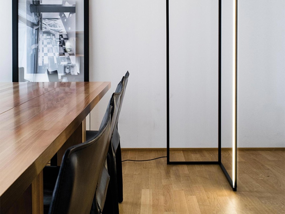 Designed by Studio Charlie for Nemo, the Spigolo Floor Lamp is perfectly designed to divide a space with its tall tubular extruded aluminium structure.