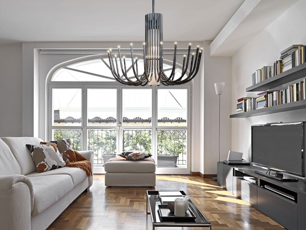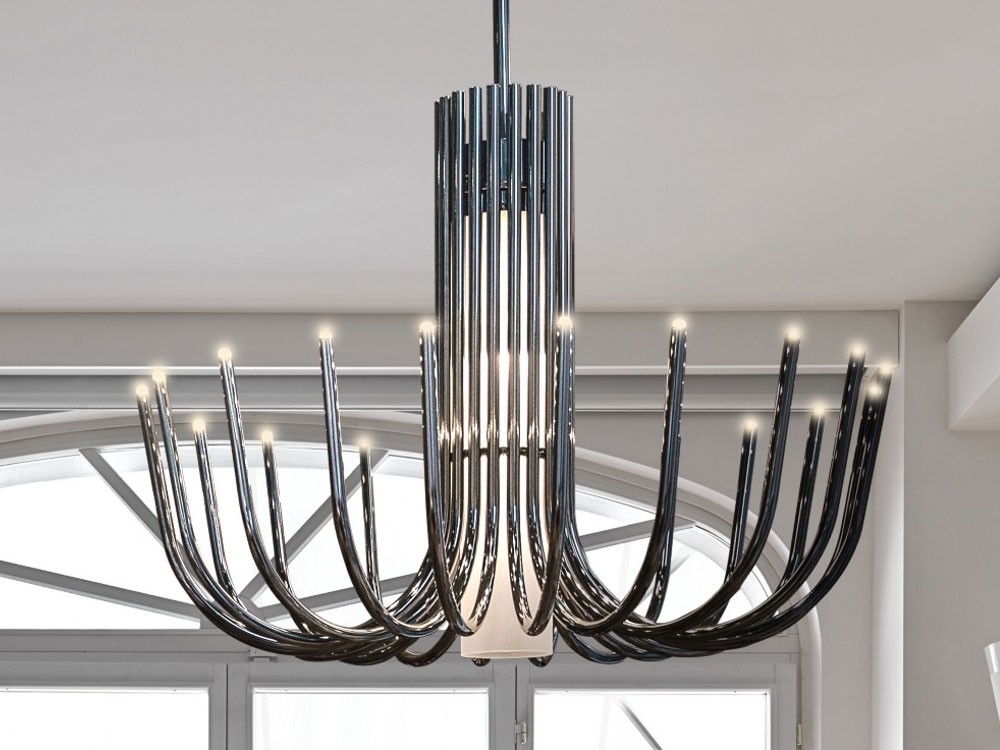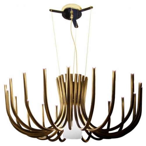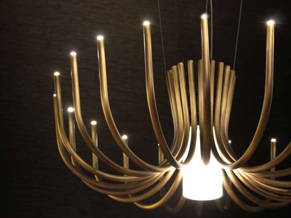 Stardust offers a contemporary take on large classical chandeliers, evoking the same awe inspiring grandeur with none of the unessential decoration. Thanks to cutting edge LED technologies the lighting source remains completely hidden, instead emphasizing the essentiality of her curvaceous shape.