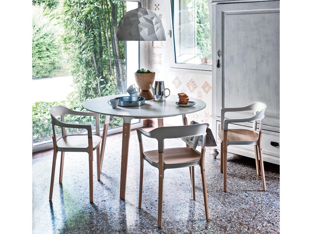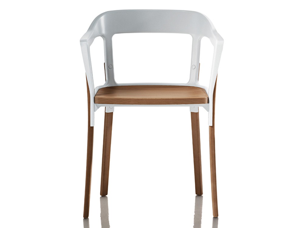 Steelwood is the meeting point between two traditional materials, steel plate and solid beech wood, combined in an assemblage of remarkable technical and formal excellence.