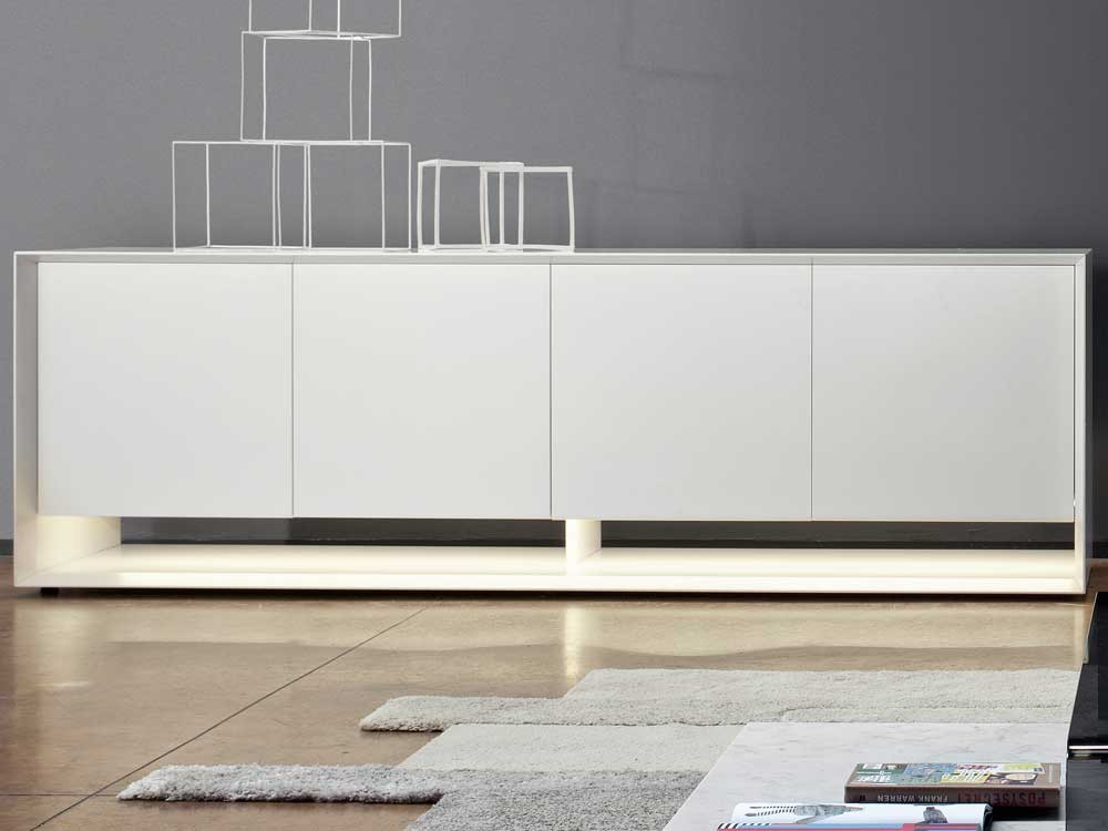 A functional and stylish design created by acclaimed designer Gino Carollo for Bonaldo. This sideboard features a striking LED lighting base and is available in two widths and three lacquered wood colours.