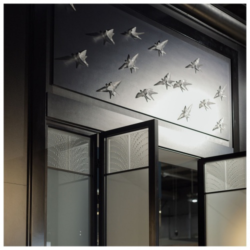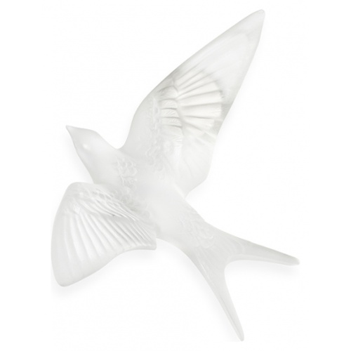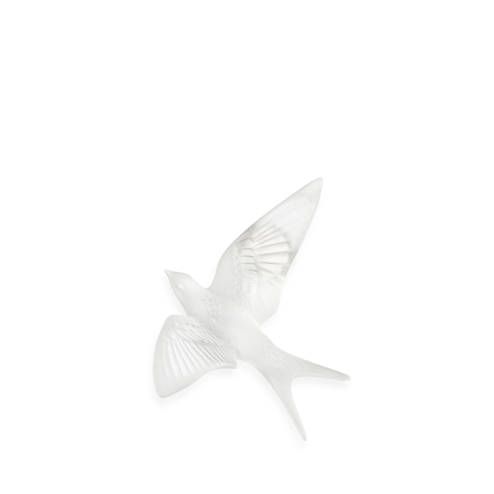 Fashioned in satin-finished and re-polished crystal, emblematic of Lalique, the swallows with a magnet can be juxtaposed in a graphic play on repetition.