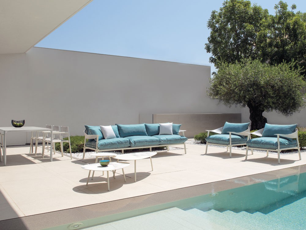 Created in 2017 by Chiaramonte & Marin for vibrant outdoor furniture maker EMU, large dimensions and unique shapes characterise the Terramare collection.