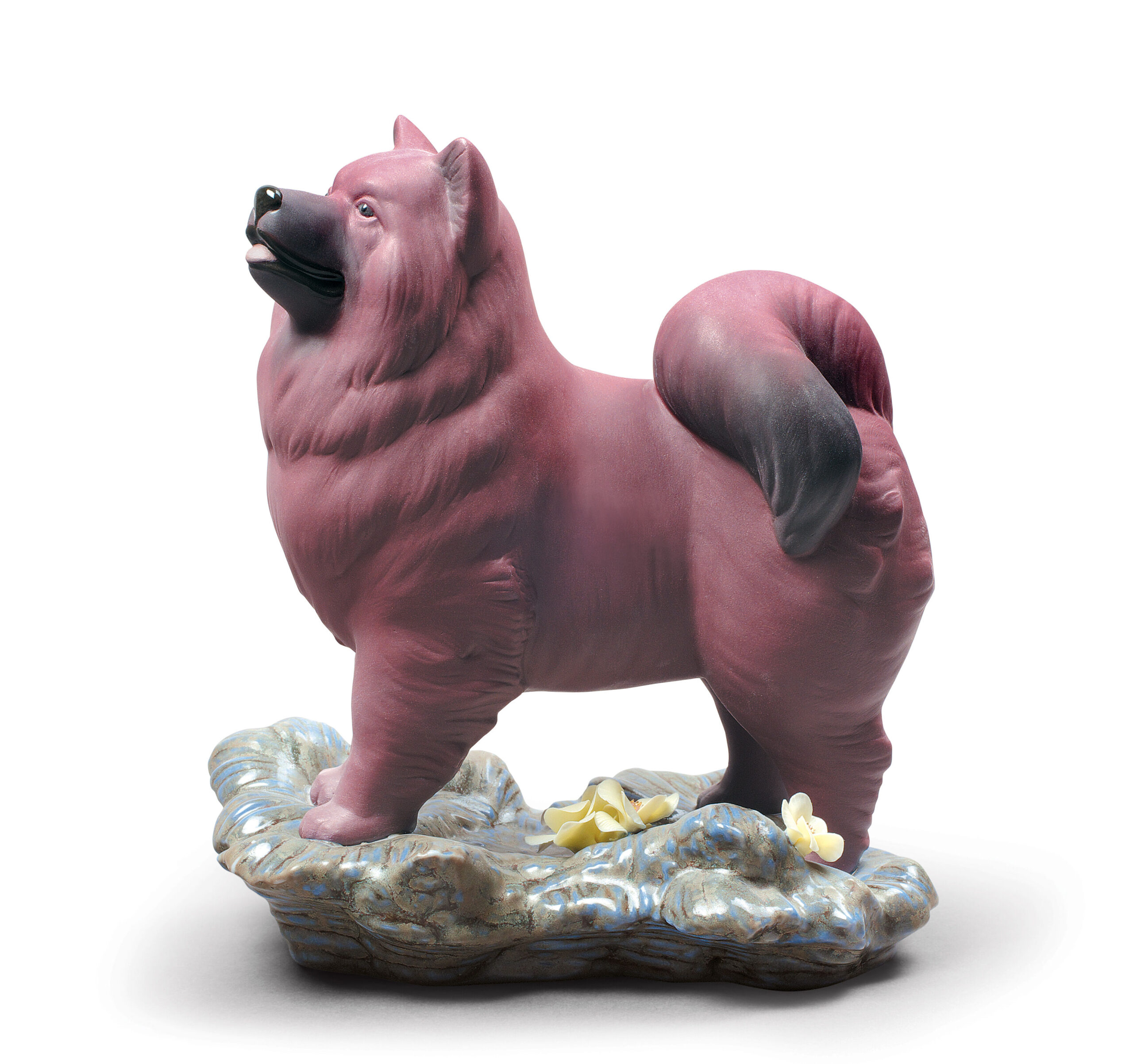 The Dog is part of the LladrĂ³ Chinese Zodiac Collection. People governed by this sign are loyal and honest, with a strong sense of justice and fair play. This piece has a matte porcelain finish with touches of gloss in places, and is decorated with a dominant purple colour and enamels on the base that supports the animal.