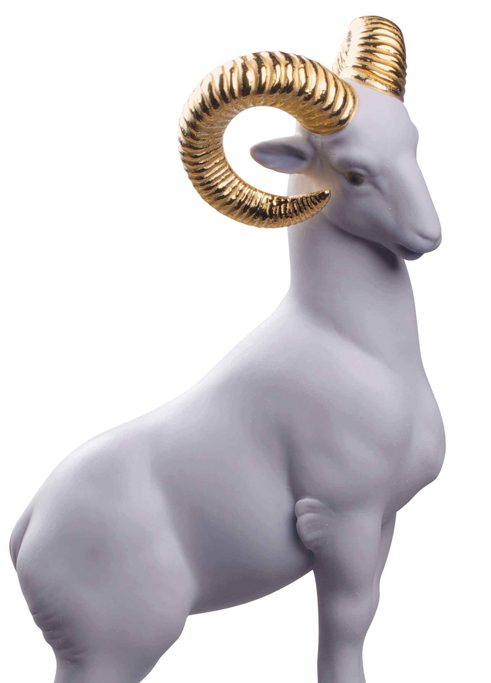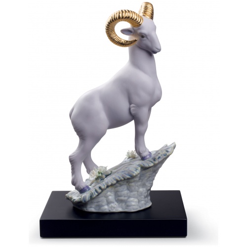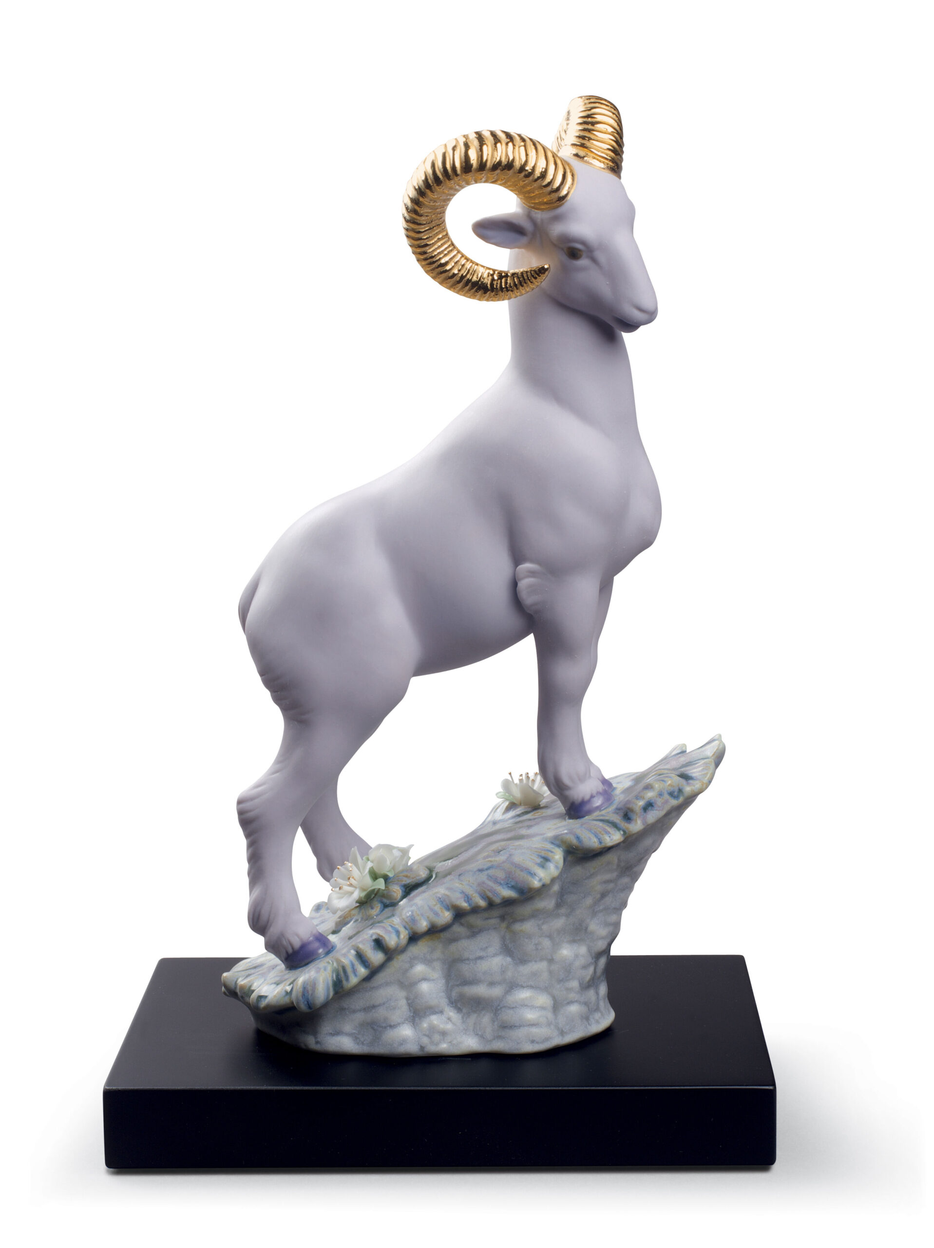 The Ram is part of the LladrĂ³ Chinese Zodiac Collection. It symbolises kindness, tenderness and love of one’s parents. People born under its sign are warm, natural and idealistic. The piece is made in matte porcelain, combined with various enamels, including a gold lustre on the horns of the ram. Other highlights are a special decoration based on the use of a lilac-coloured tone that contrasts with the gold of the horns and the addition of flowers on the base.