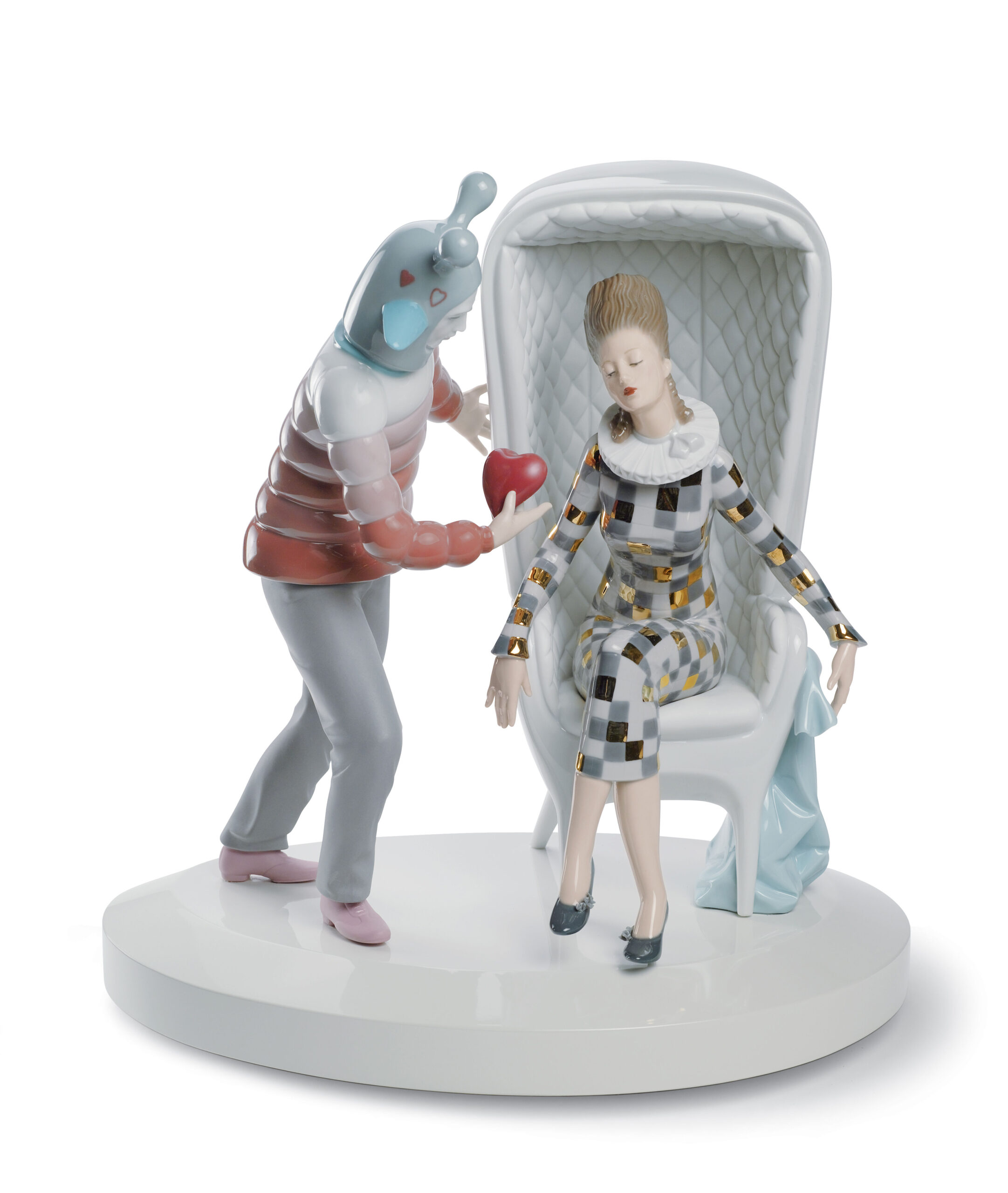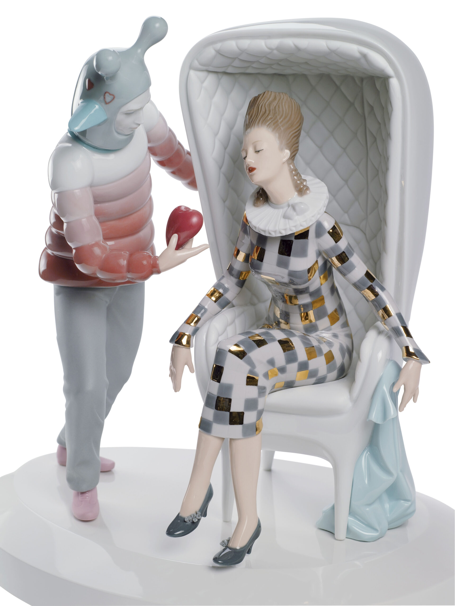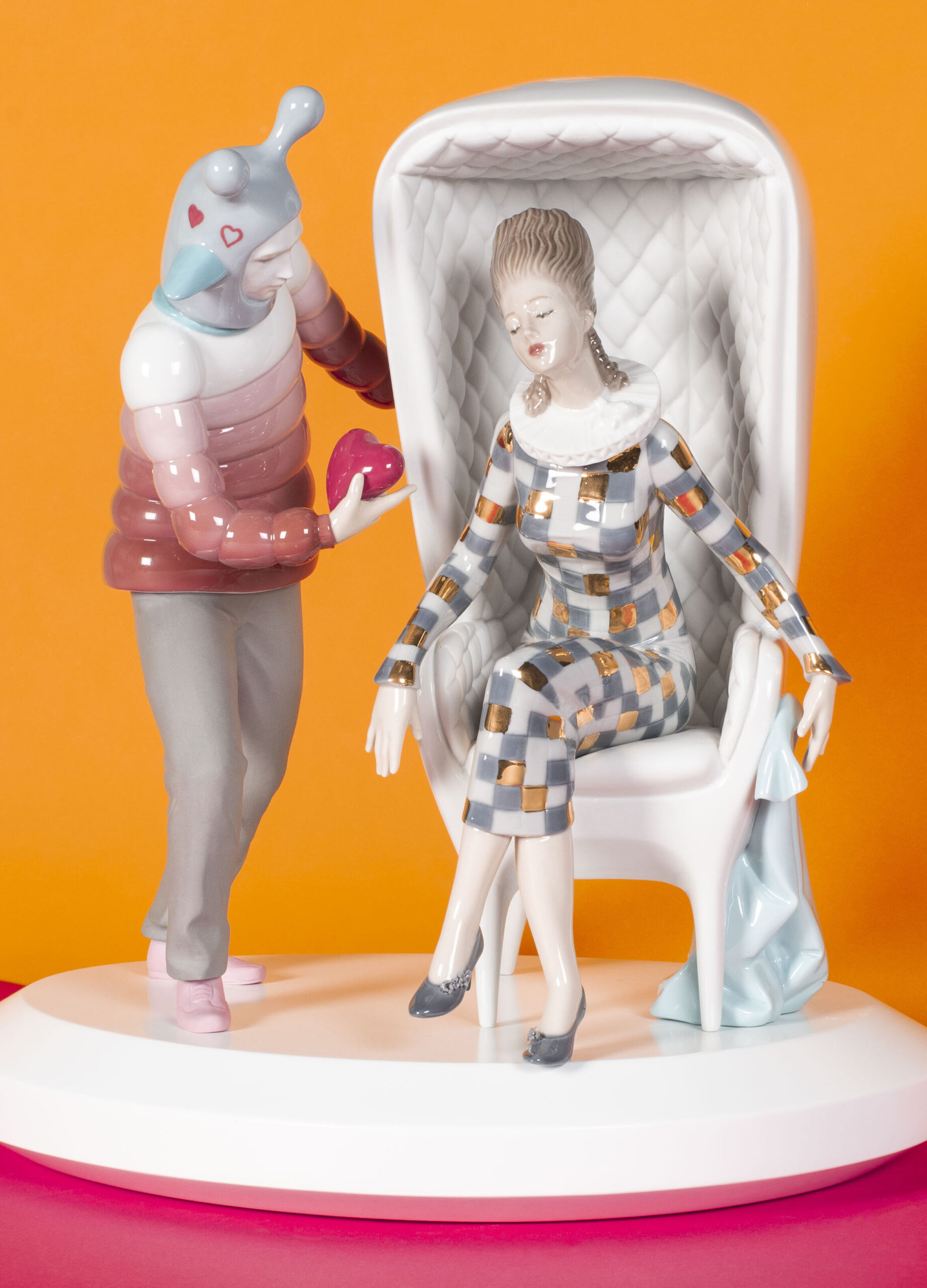 Like all the pieces in Jaime Hayon’s The Fantasy Collection, this creation arises from the fusion of a classic LladrĂ³ theme such as love and the playful sense and fantasy that the Spanish creative Jaime Hayon brings to his designs. With elegance and carefree attitude, love inspires this scene in which a sophisticated young woman receives a surprisingly romantic statement.