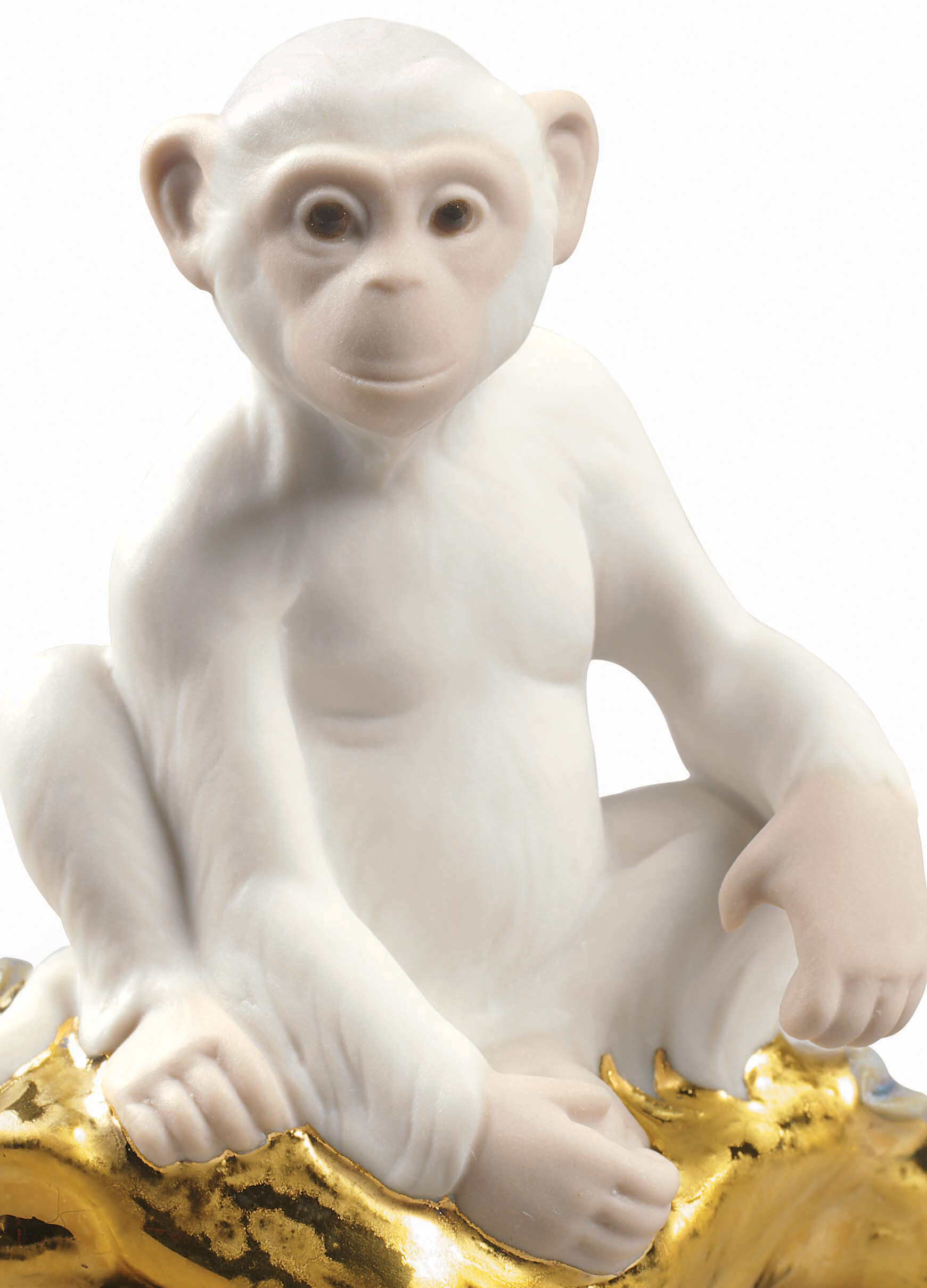 The Monkey is part of the LladrĂ³ Chinese Zodiac Collection. Brilliant, imaginative and skilled, people born under this sign are quick and able to adapt to any situation. With their intelligence and sense of humour, Monkeys are constantly looking for new experiences and challenges to stimulate their senses. The piece is made in matte porcelain combined with a number of enamels, including a gold lustre on the base.