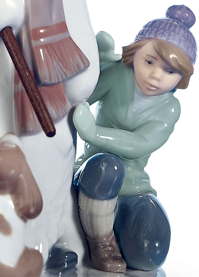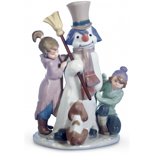 Winter is finally here! The first snows cover the streets and the children have been celebrating by building an enormous snowman. A glossy porcelain piece, finished in pastel colours, ideal as a gift, collectible or decoration.