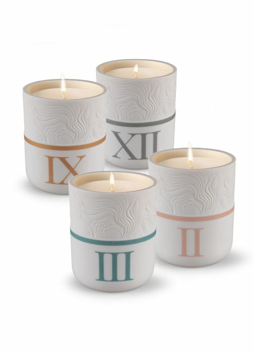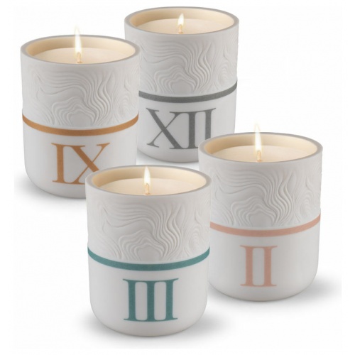 “The Timeless collection is inspired by fragrances that have the ability to transport us to another place, to convey the sensation of being at home, of strolling along the seashore or in a flower garden. Timeless is based on those fragrances that seem to put time on hold, home fragrances in delicately ornamented porcelain containers. Each container has 270 gr of natural wax and a different scent.