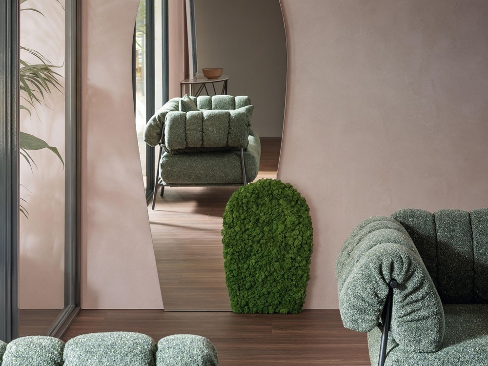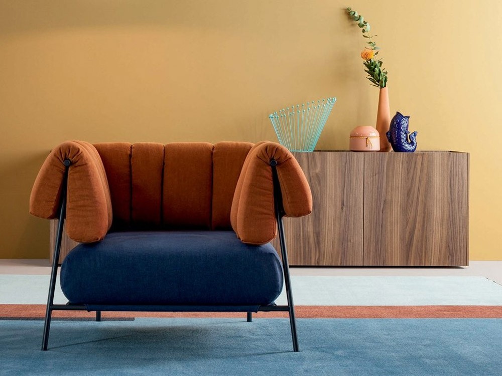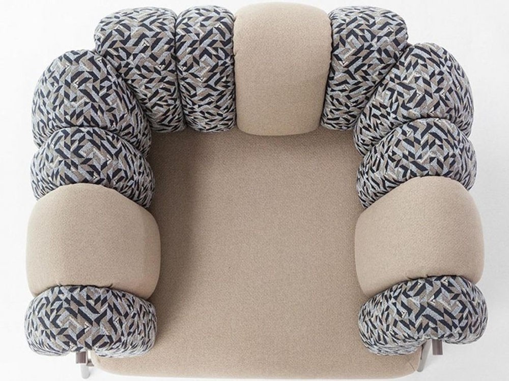 Playful and generous, Tirella offers up a wonderfully imaginative take on the classic armchair. Inspired by the gentle drape of fabric swatches laid out on a cutting table, it reimagines the backrest — an oft overlooked part of the chair — as an enveloping three dimensional cushion.