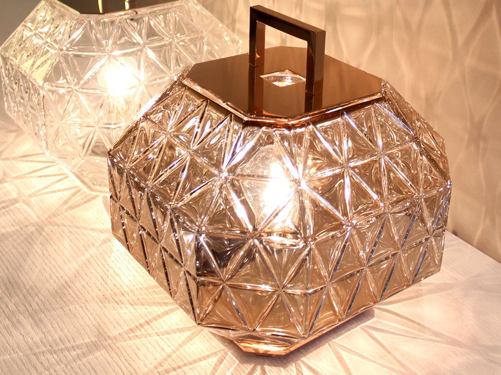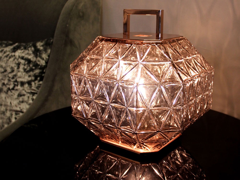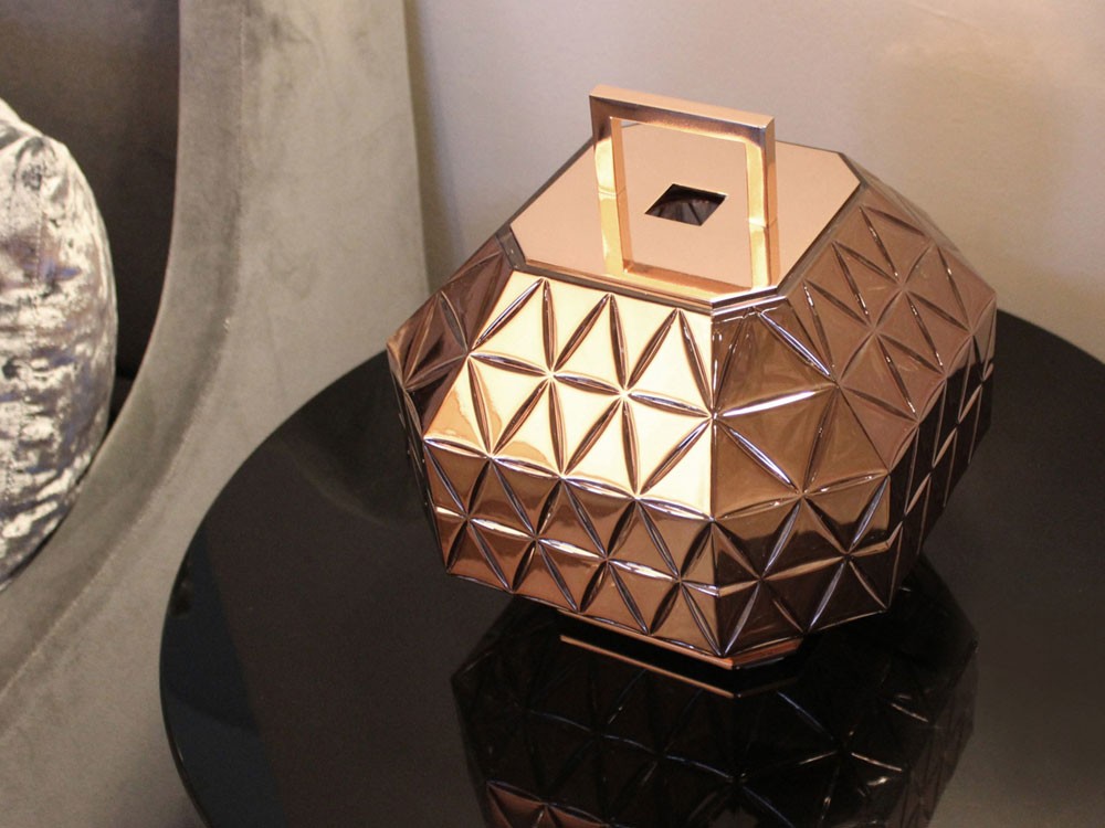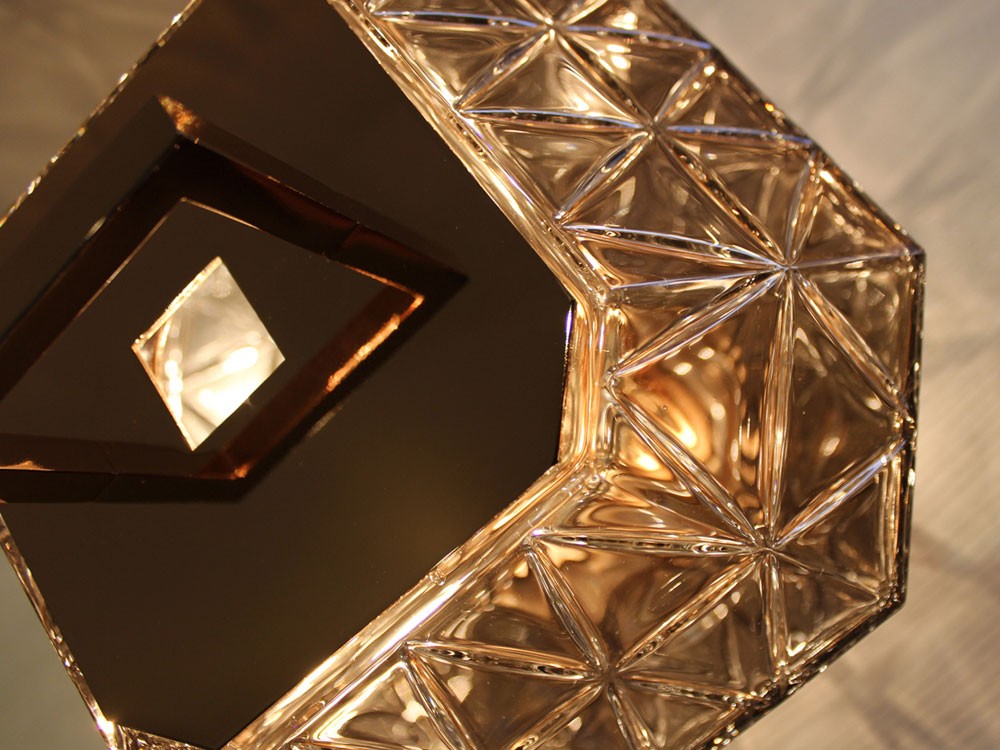 Treasure, a “jewel”. Crystal engraved and rose gold. Treasure is a precious commodity in itself, thought to characterize an exclusive setting.