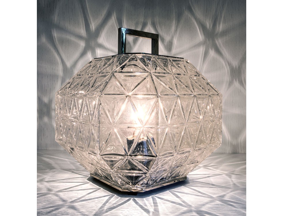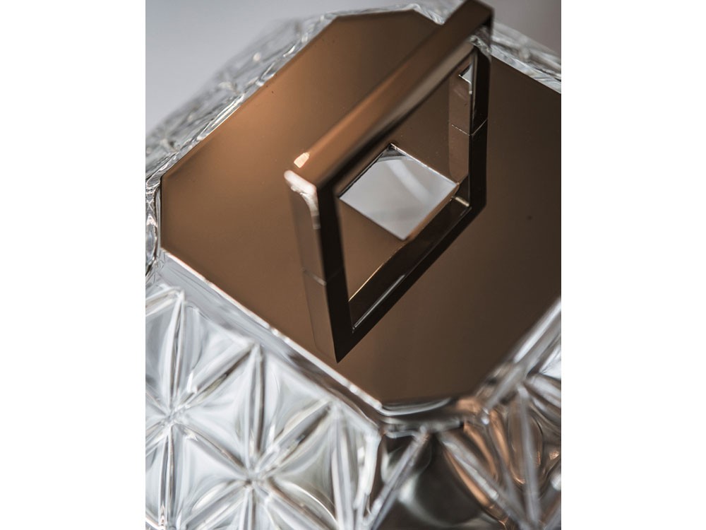 Treasure, a “jewel”. Crystal engraved and polished. Treasure is a precious commodity in itself, thought to characterize an exclusive setting.