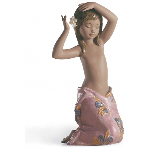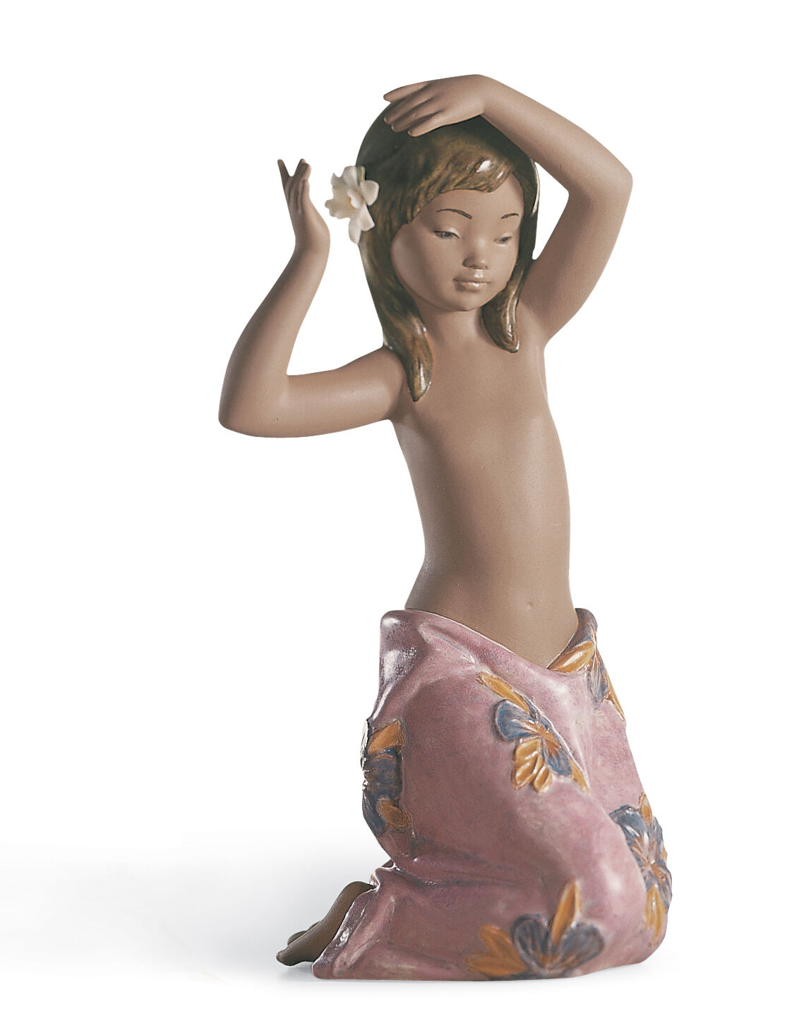 The tone of her skin, the carefree way she wears a beautiful flower in her hair; everything about her transports us to the South Seas, to heavenly beaches of white sand and turquoise waters. A stoneware piece, decorated with enamels, perfect as a gift, a collectible or a decoration.