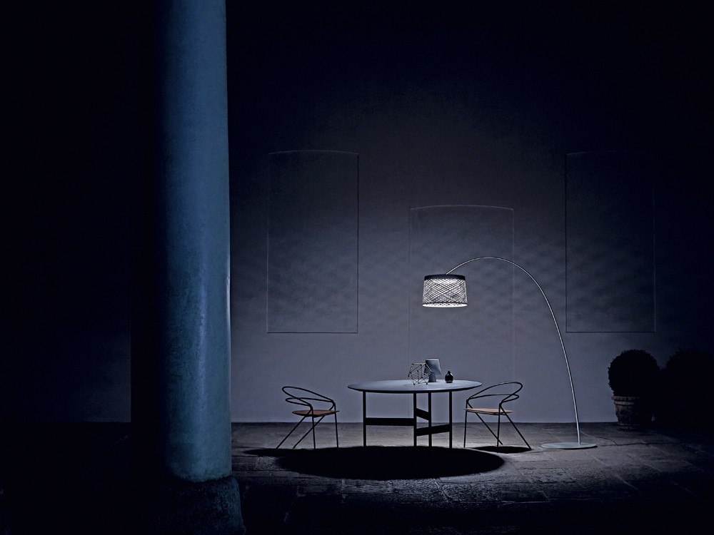 A lamp-icon in its outdoor version. Based on the image of a fishing rod as it curves, Twiggy Grid embodies its flexibility, clarity and strength, gathering them into an object with a vivid personality.