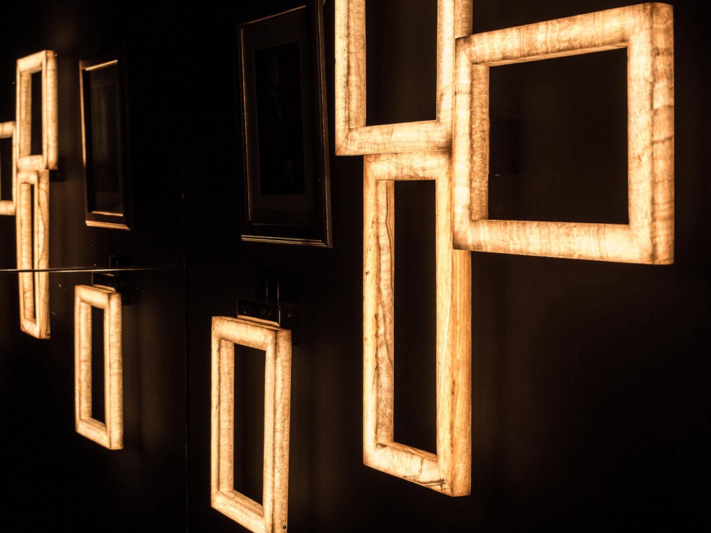 An essential, and at the same time precious lighting with an ancient frame, like the marble which it is made of.