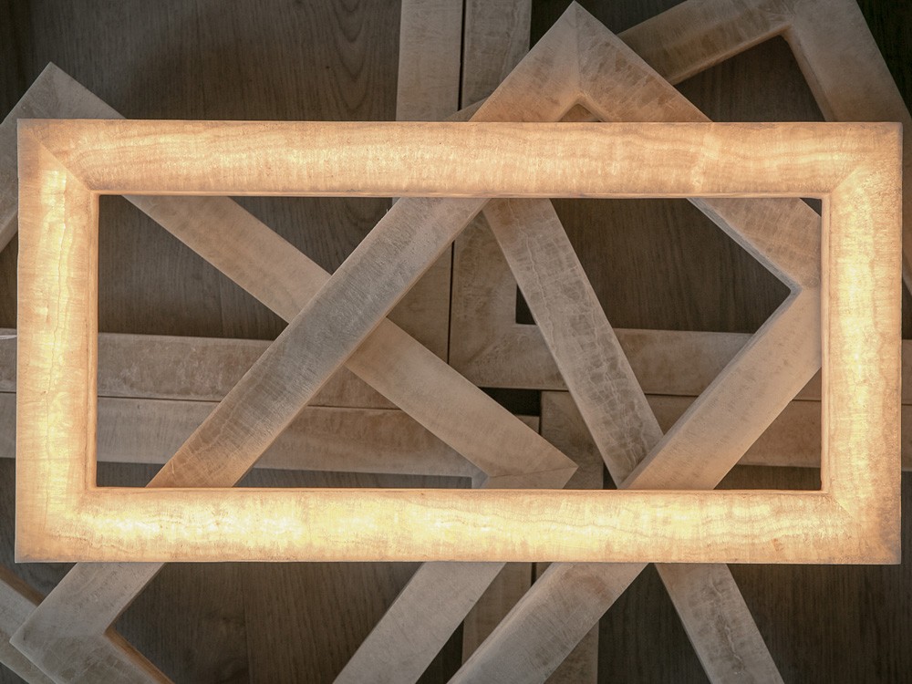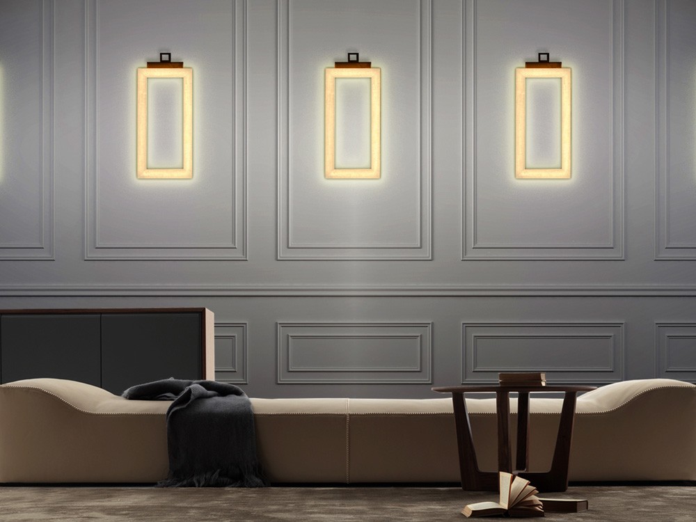 An essential, and at the same time precious lighting with an ancient frame, like the marble which it is made of.