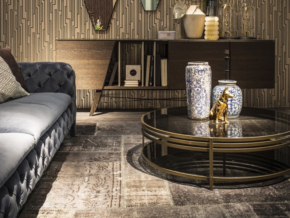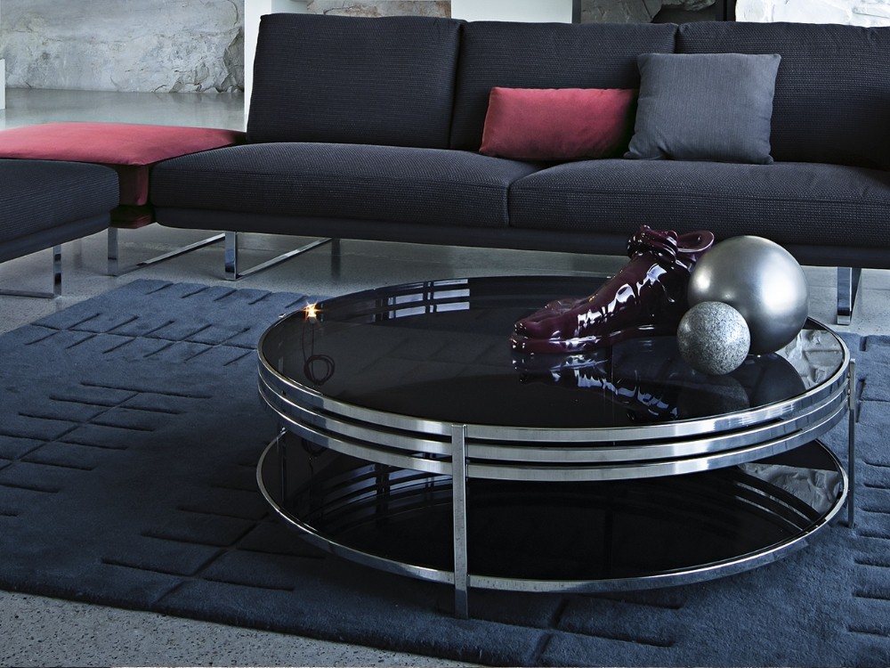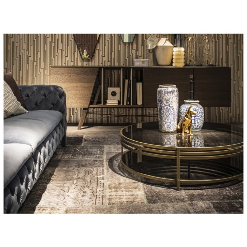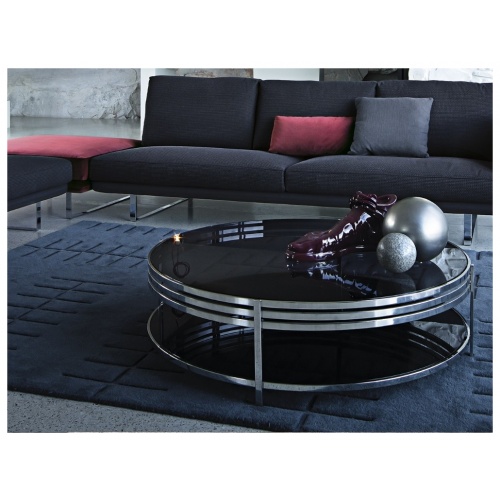 A series of small tables that stand out for their elegance of structure; made of polished stainless steel or brass finished, and for the lightness of their tempered smoked glass top.
