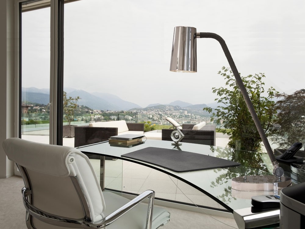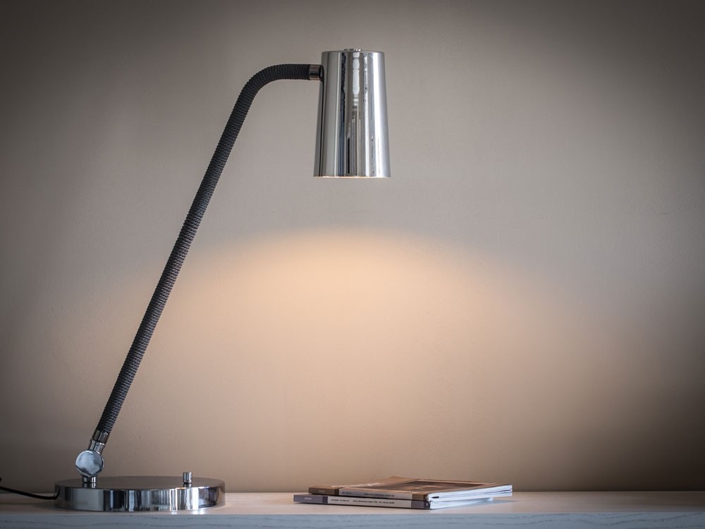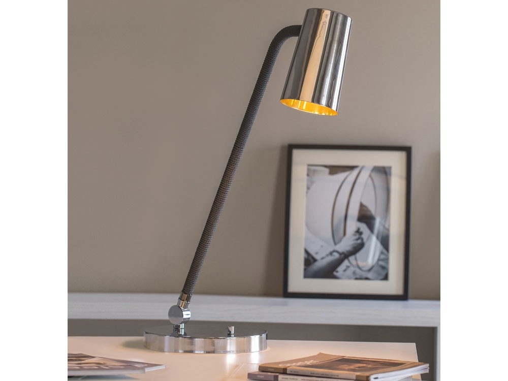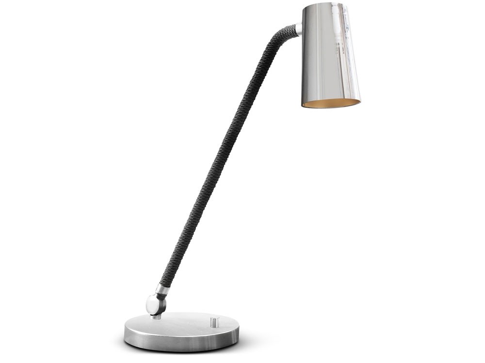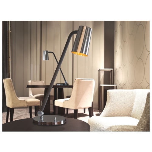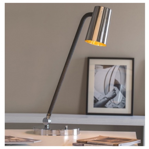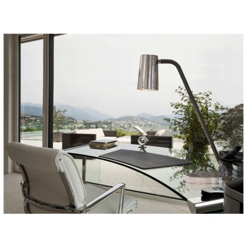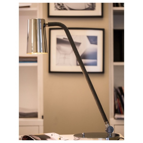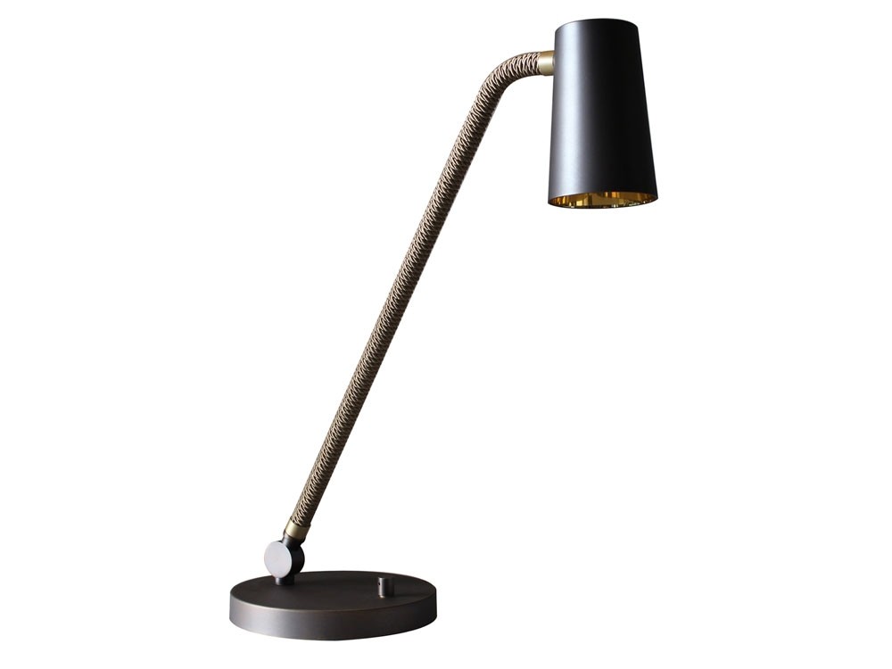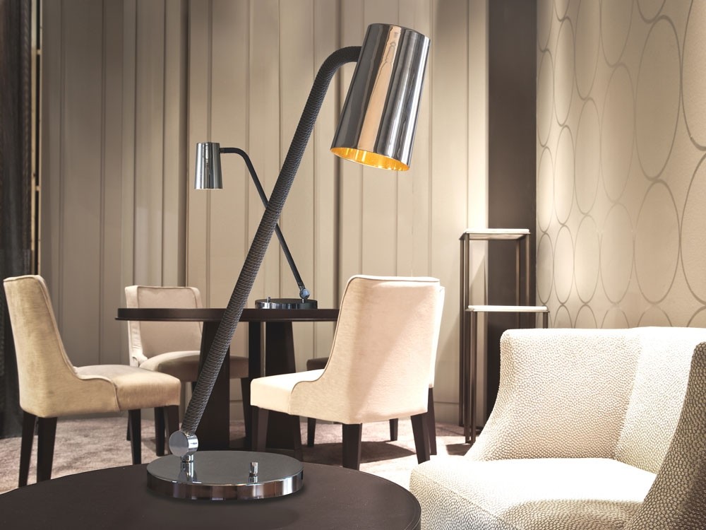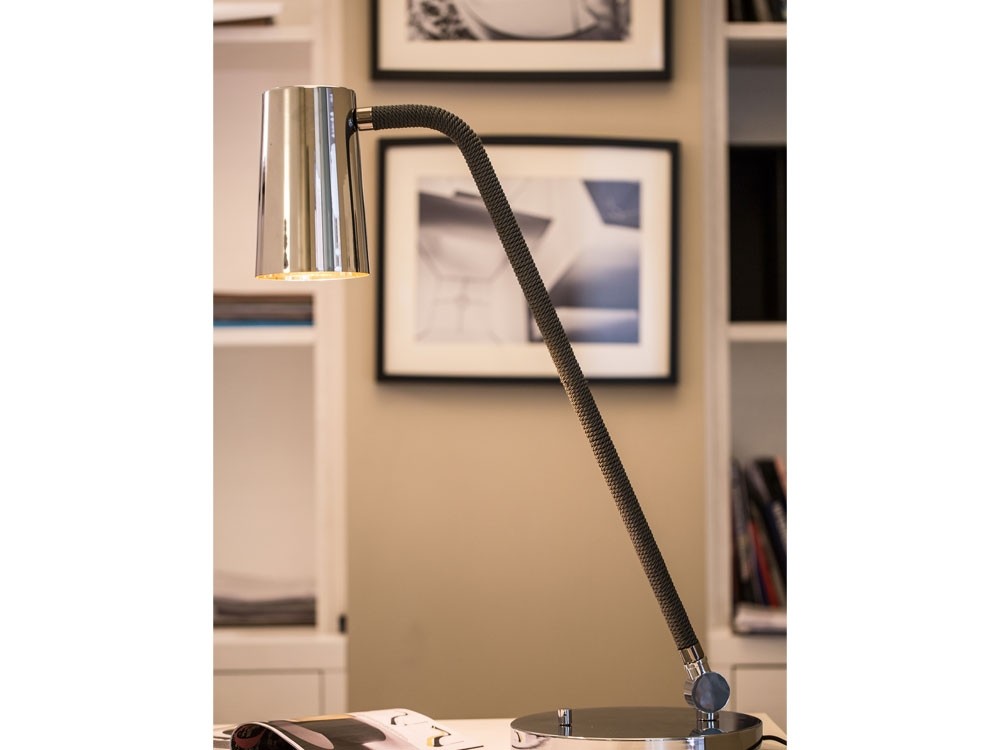 UP is a collection of lamps characterised by the combination of metal in satin bronze and chrome finishes with the braided silk which the stems are coated with (in the available combinations). The inside of the truncated cone-shaped swivel head is coated with a golden film to give a touch of style, to warm the light beam emitted by the LED bulb. Particularly versatile with a rotary switch on board.