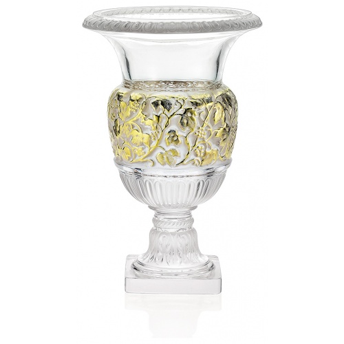 Originally designed by René Lalique in 1939, the Versailles Vase was inspired by the Medici vases, a perfect example of classic design to highlight contemporary interiors. The satin-finished and repolished crystal, a Lalique signature, exhibits a finely carved floral motif.