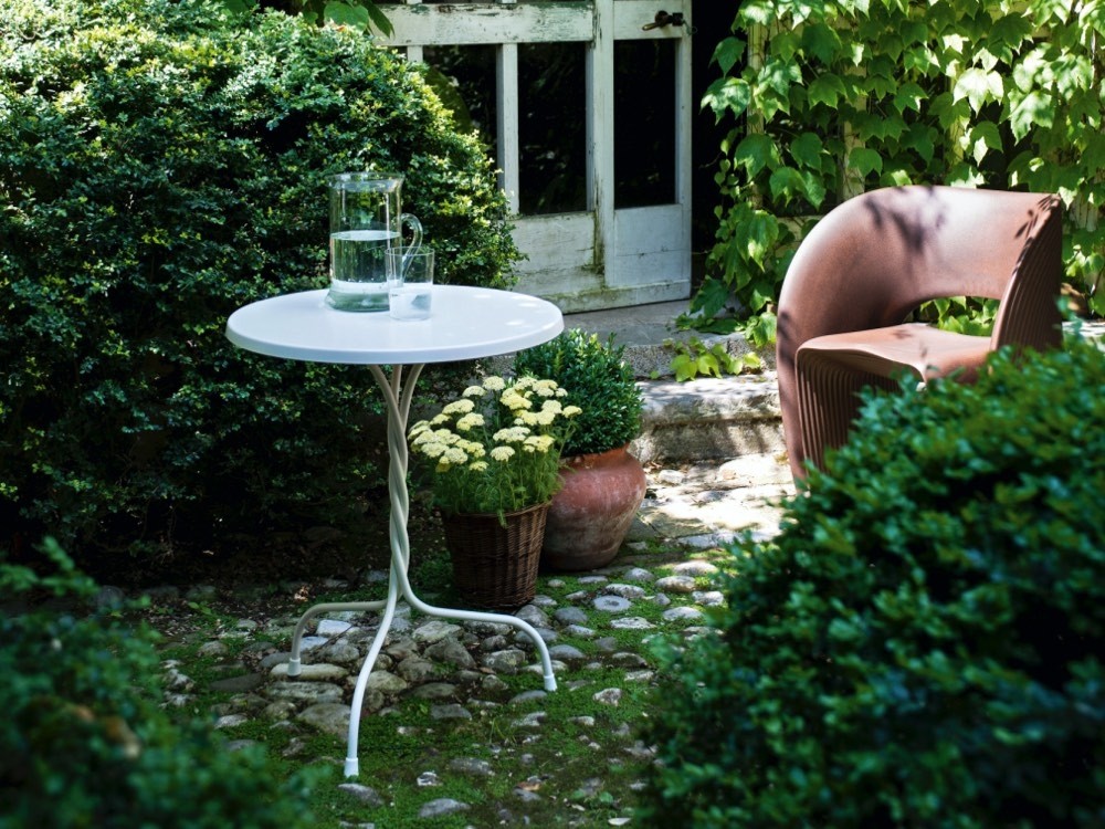 Vigna is a wonderfully simple collection that reveals Magis’ mastery over all things metal. When viewed from the side, the joinery looks like twisted metal vines that give the impression that Nature is reclaiming this beautiful design for herself.