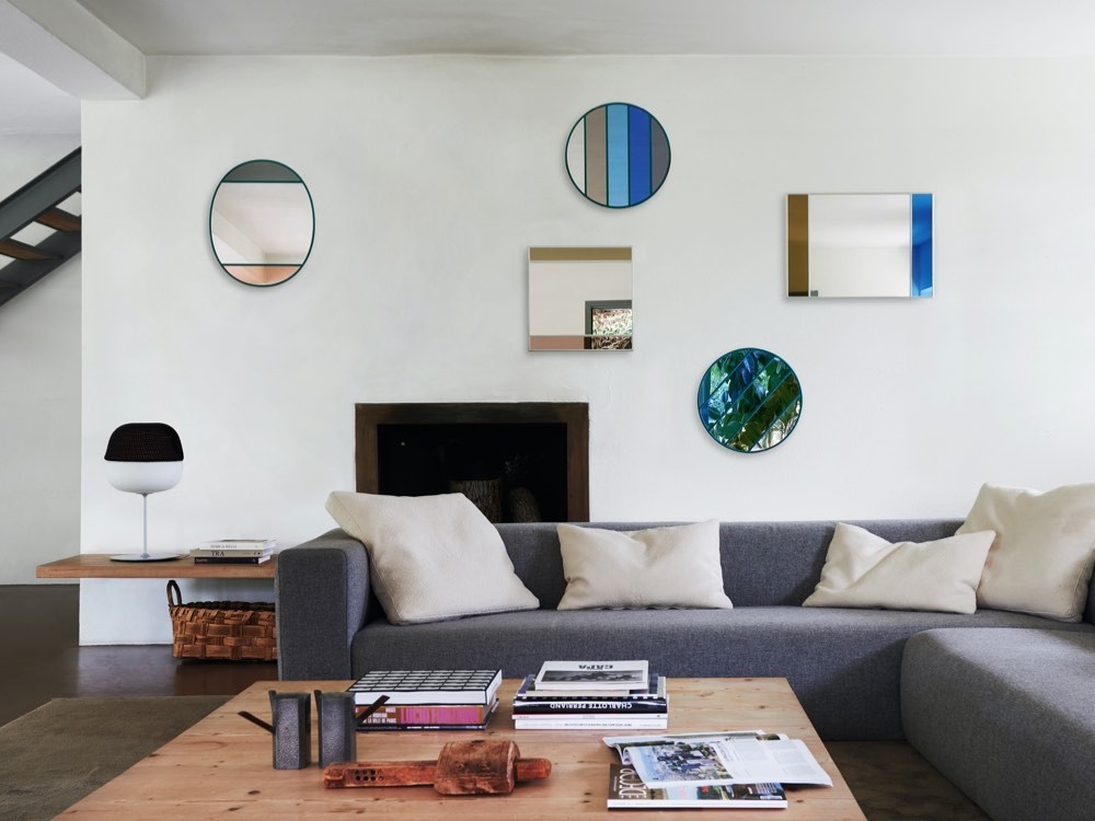 Vitrail is a beautiful collection of mirrors that explores the relationship between colour and light. Available in both round or rectangular formats, each mirror features beautiful segments of coloured glass that lend a new perspective to whatever is being reflected.