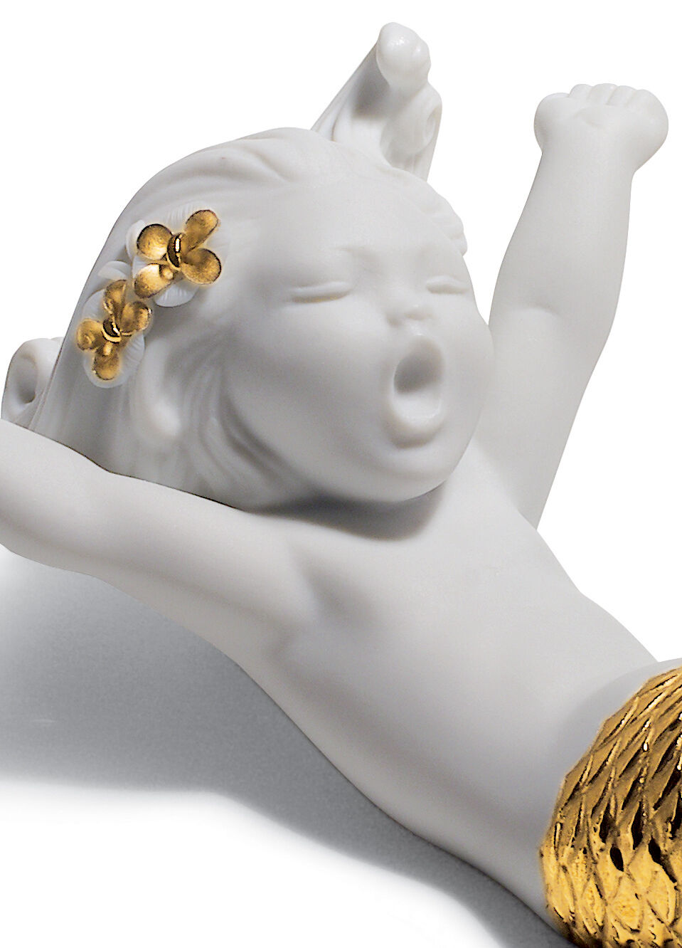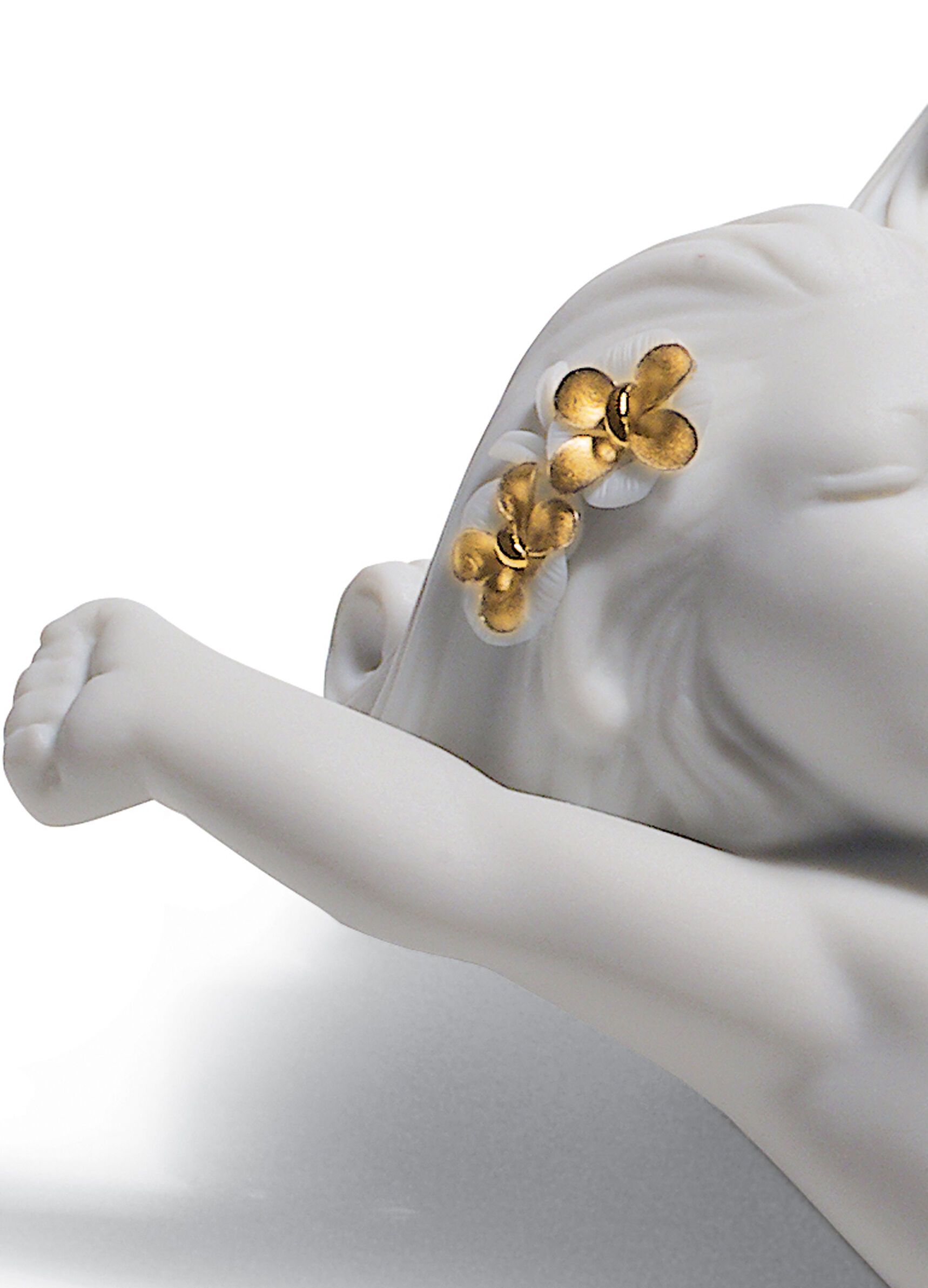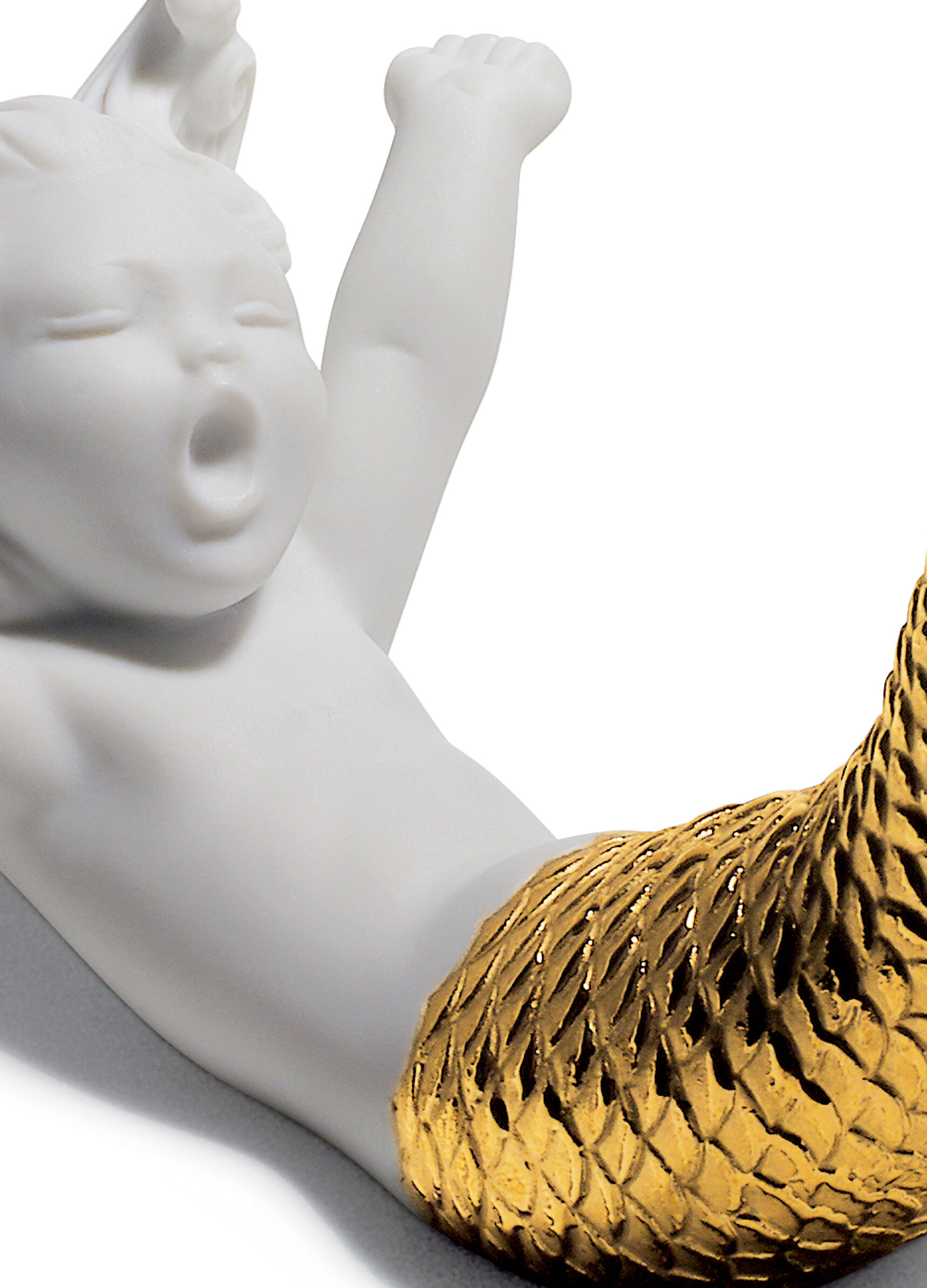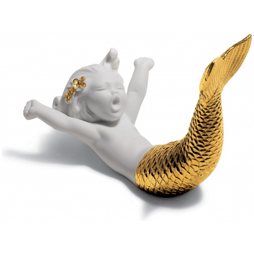 The Re-Deco concept gives a new life to the classic pieces of the LladrĂ³ catalogue through a new and striking decorative approach. This charming little mermaid takes on a much more contemporary style thanks to the contrast between the matte white porcelain finish and the golden lustre that highlights her tail and the flowers in her hair.
