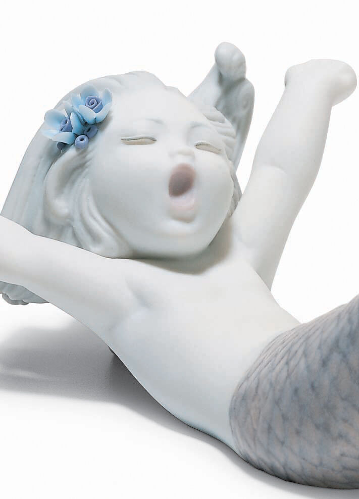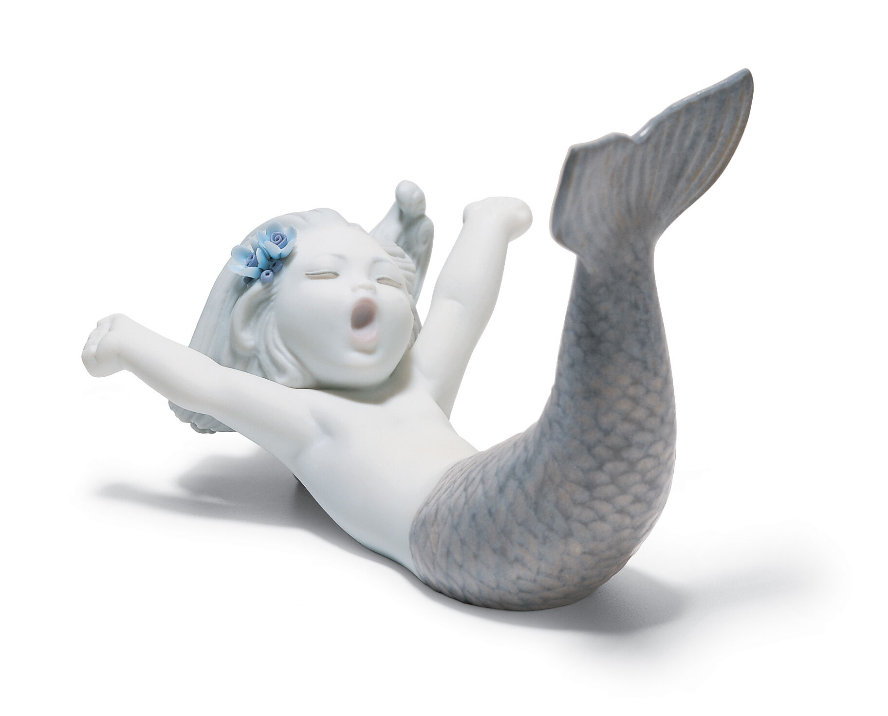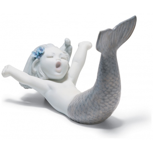This sweet little mermaid stretching gracefully transports us to an underwater fantasy world full of wonders. A matte porcelain piece, decorated in soft pastel colours, perfect as a gift, collectible or decoration.