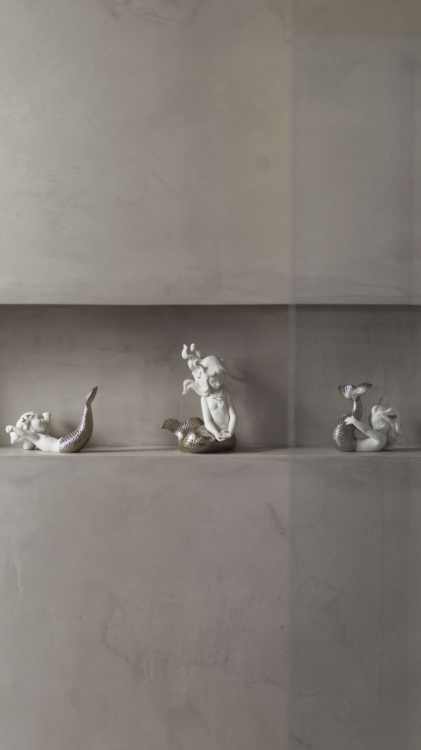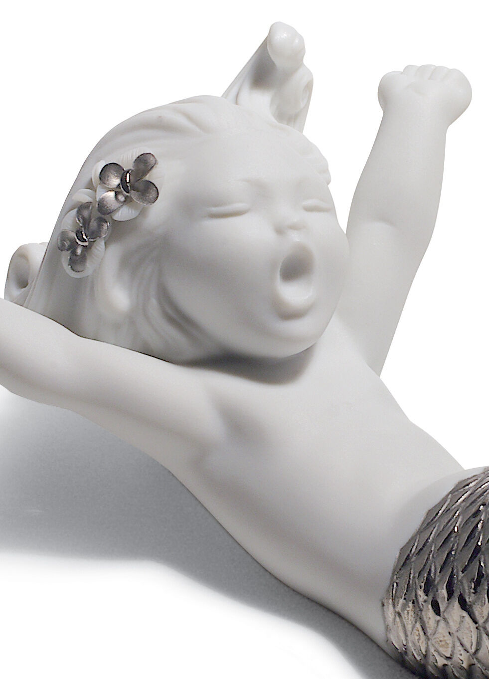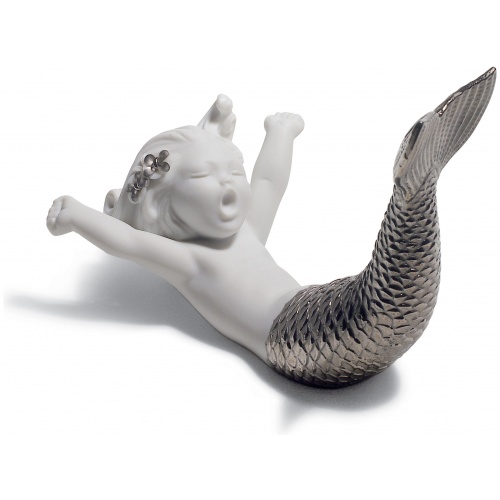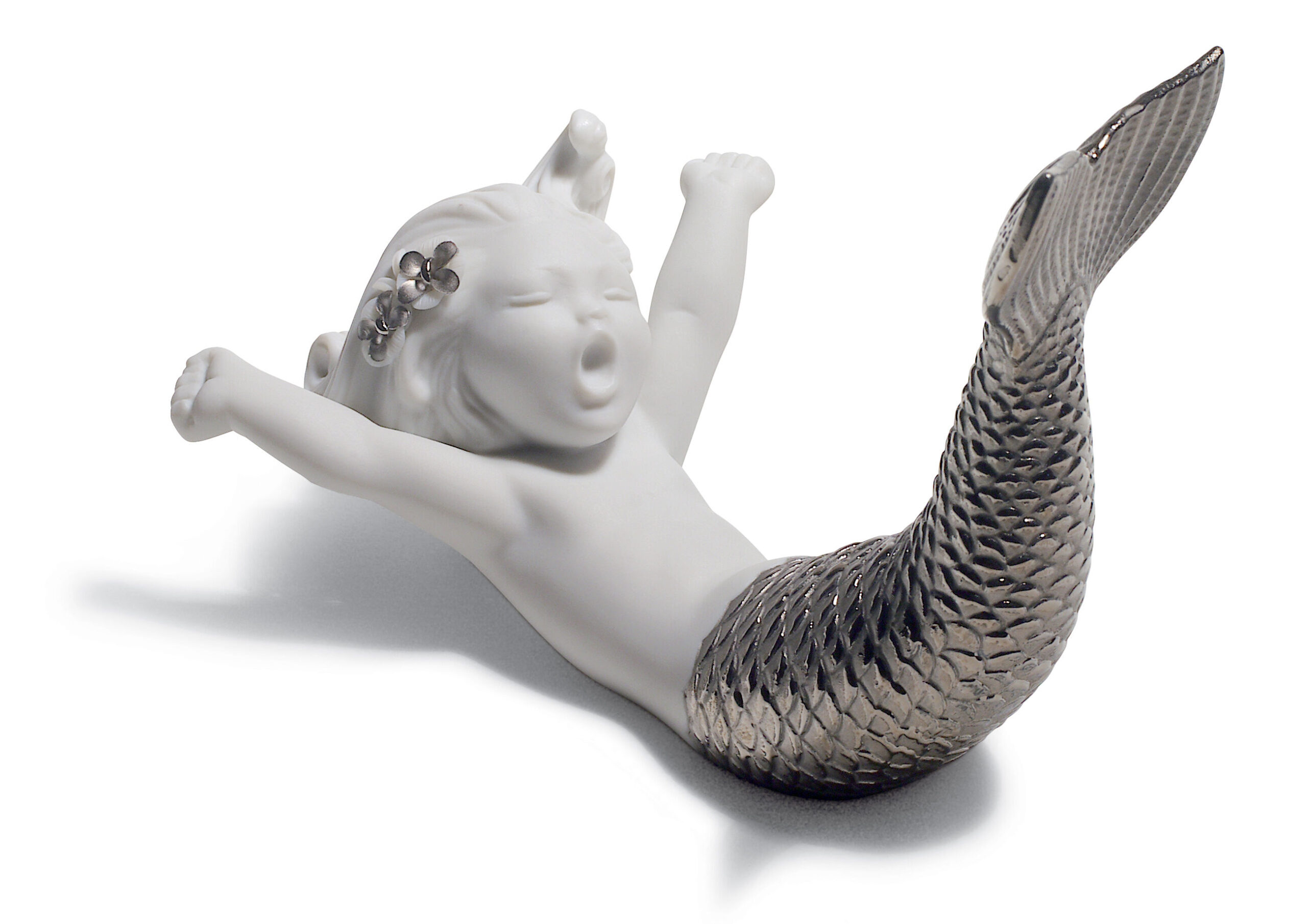 The Re-Deco concept gives a new life to the classic pieces of the LladrĂ³ catalogue through a new and striking decorative approach. This charming little mermaid is given a much more contemporary style thanks to the contrast between the matte white porcelain finish and the silver lustre that highlights her tail and the flowers in her hair.