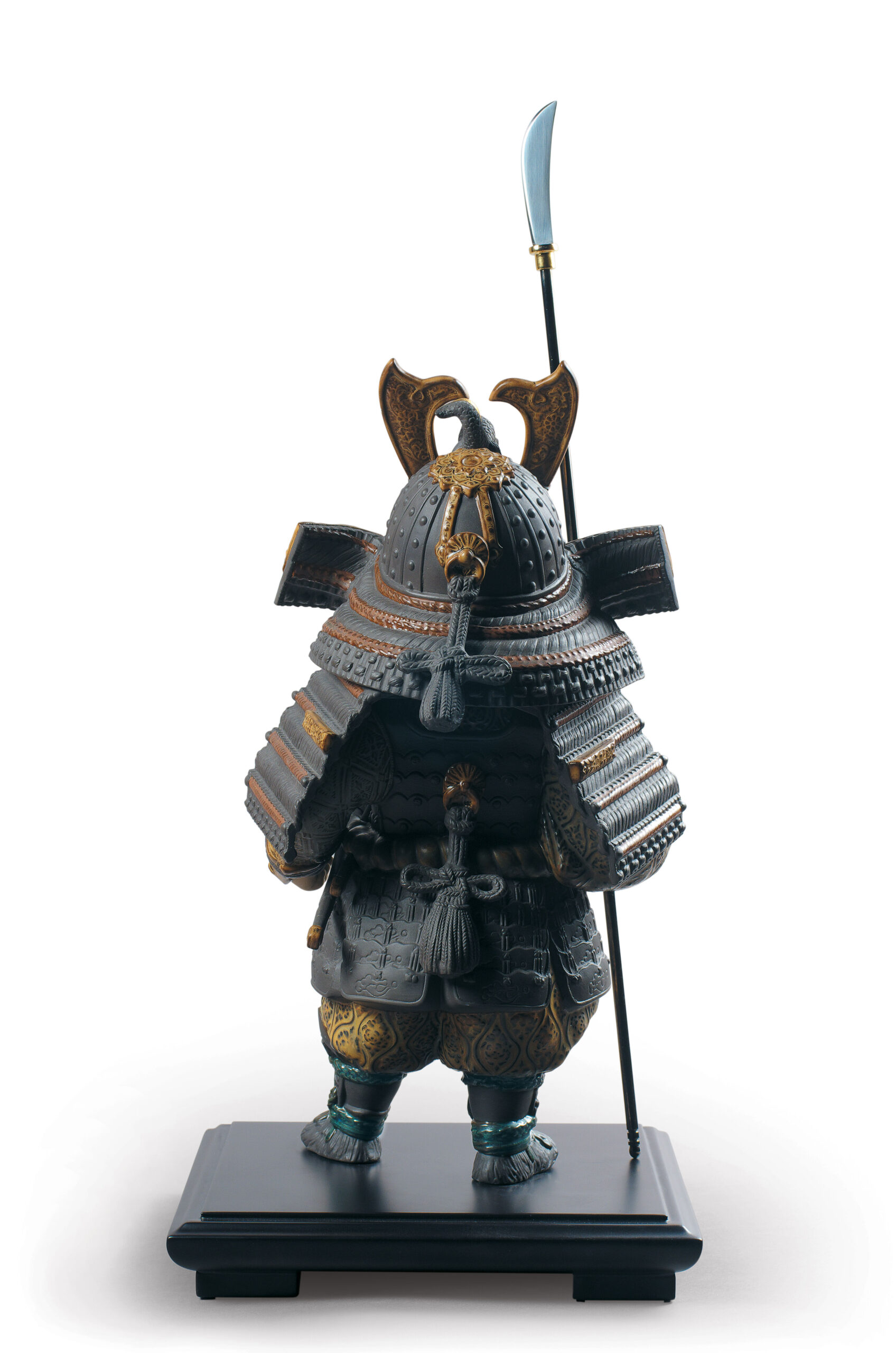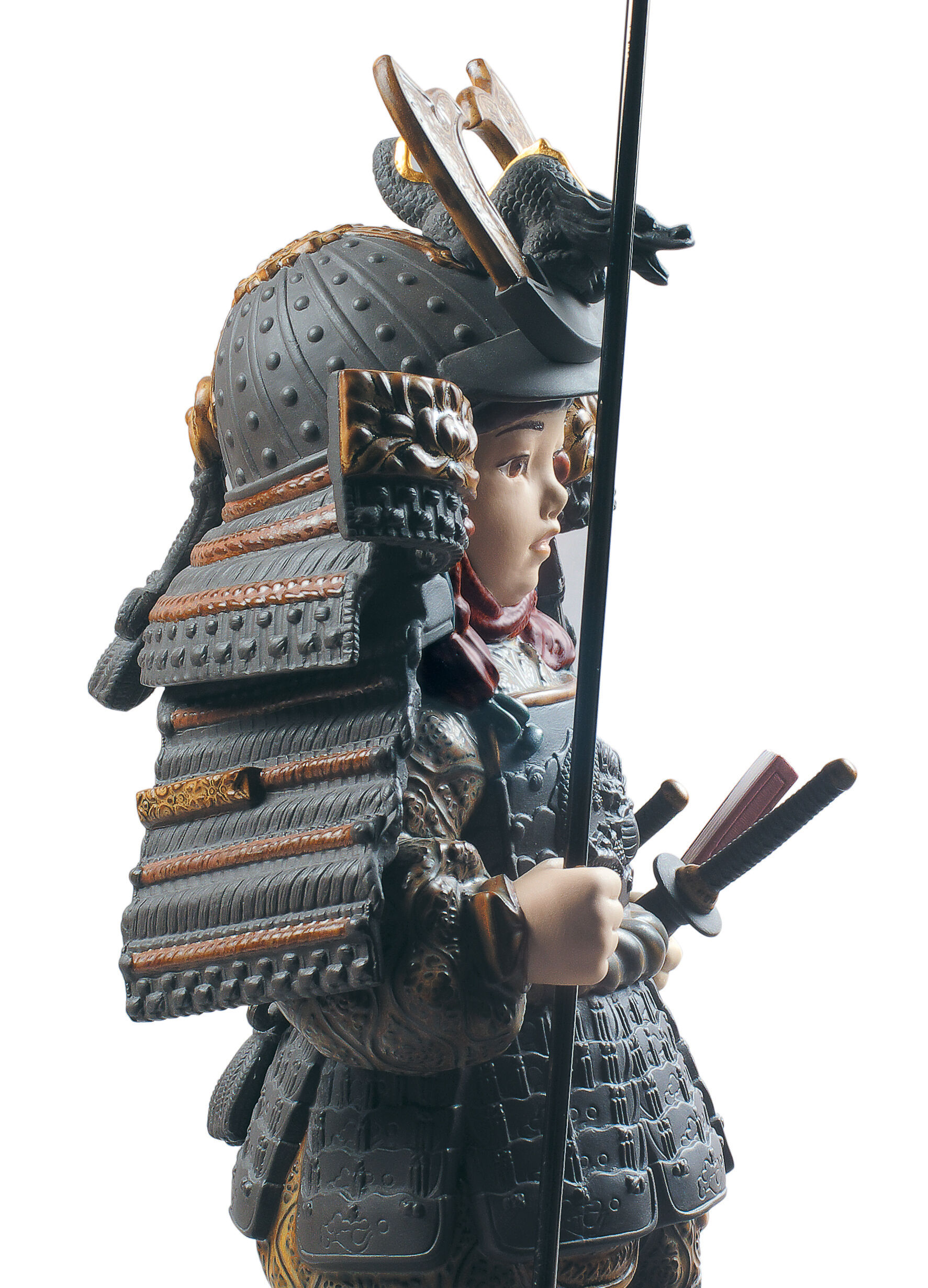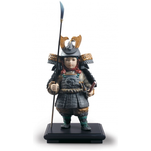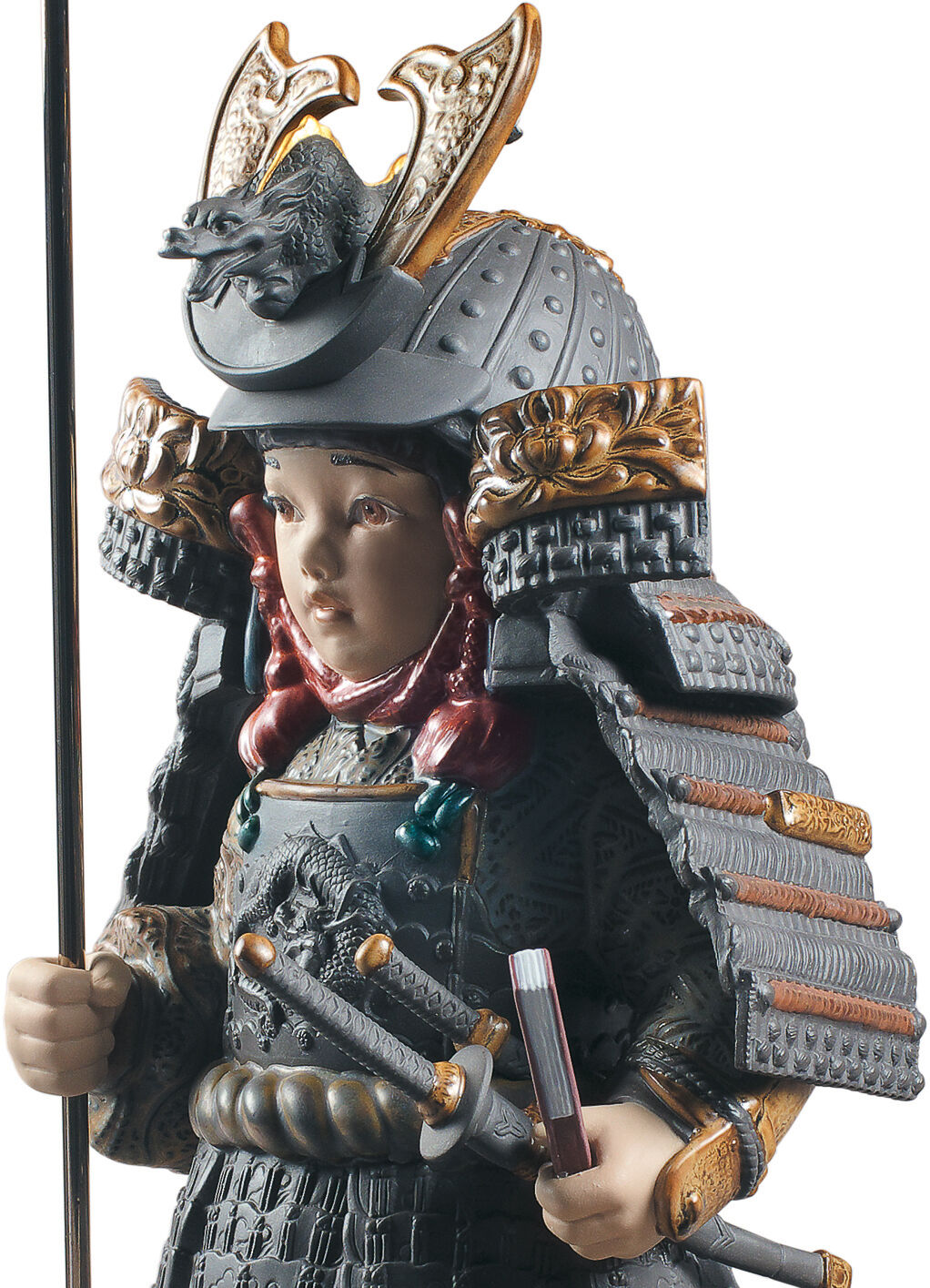 Piece inspired by one of the traditions of Japanese culture. On the fifth day of the fifth month, to mark Children’s Day, dolls dressed in samurai armour are displayed inside the home, granting health for the little ones and symbolizing the virtues of courage and determination. This creation, made in black porcelain with silver lustre, stands out for its strength and elegance, for the refined and meticulous decoration of the armour and for the captivating expression of the boy’s face.