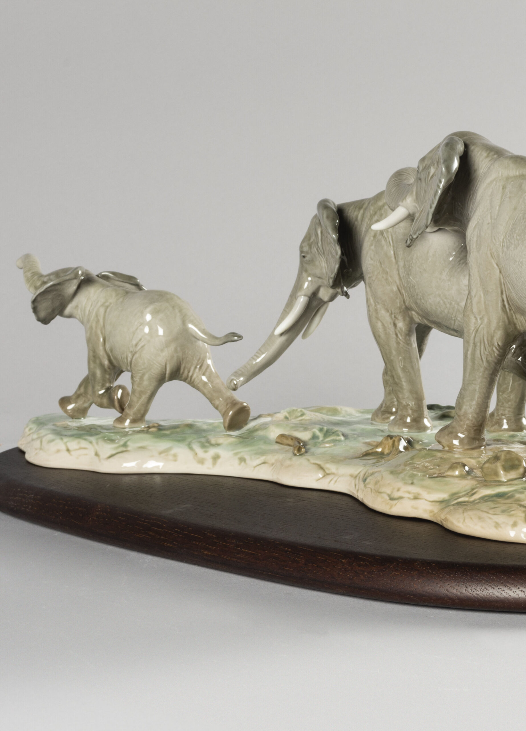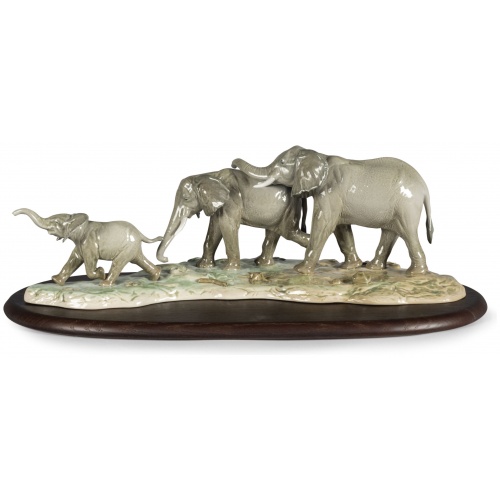 These incredible elephants are part of African Savannah, the impressive masterpiece that depicts a group of animals on a journey along an age-old route in search of water. Made in glazed porcelain and decorated in soft pastel tones, they can be acquired separately or with the rest of the animals included in this striking composition. An ideal creation to give as a gift to lovers of animals and nature. Handcrafted in Spain.